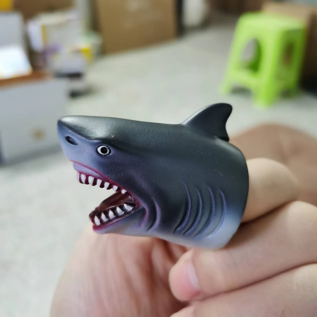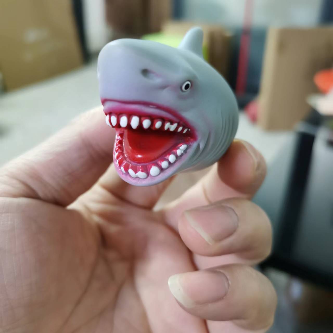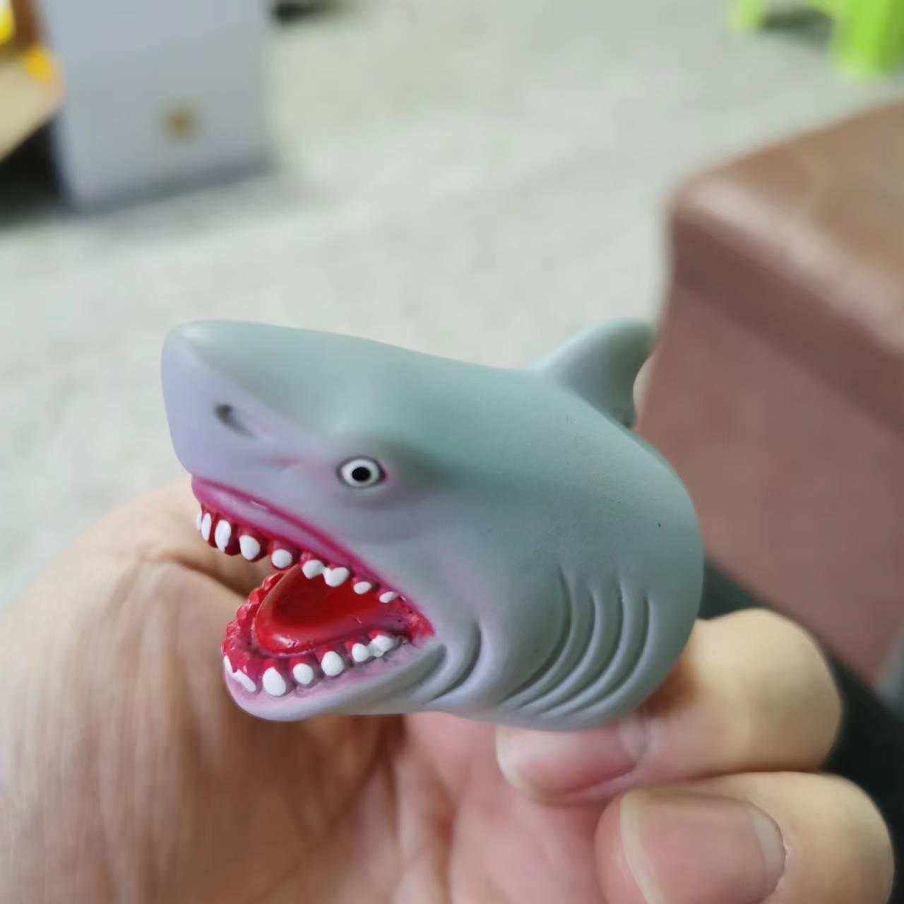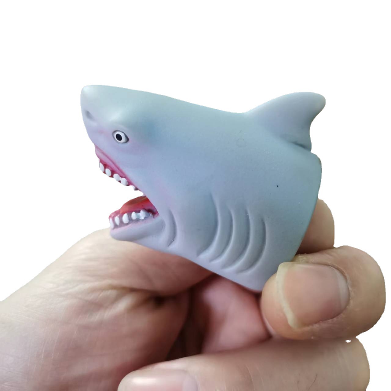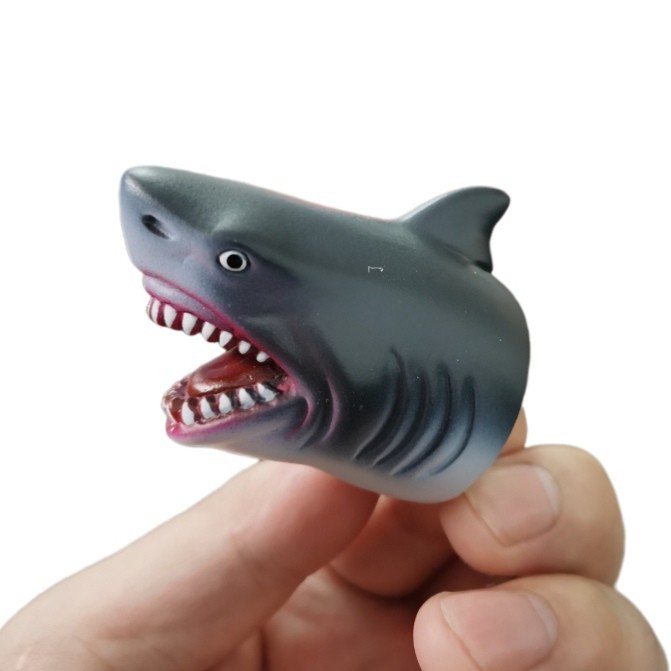 跨境现货搪胶创意鲨鱼手指玩偶节日解压搞怪软胶玩具游戏互动道具 English | 投诉