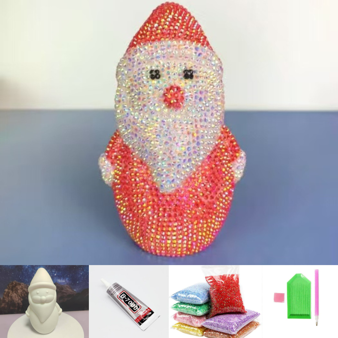 外贸圣诞老人贴钻公仔 DIY手工存钱罐摆件底部取币孔工厂直供批发