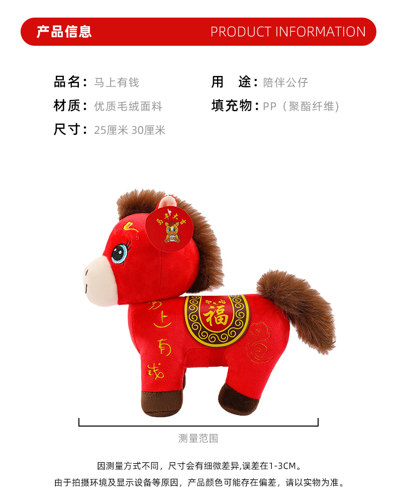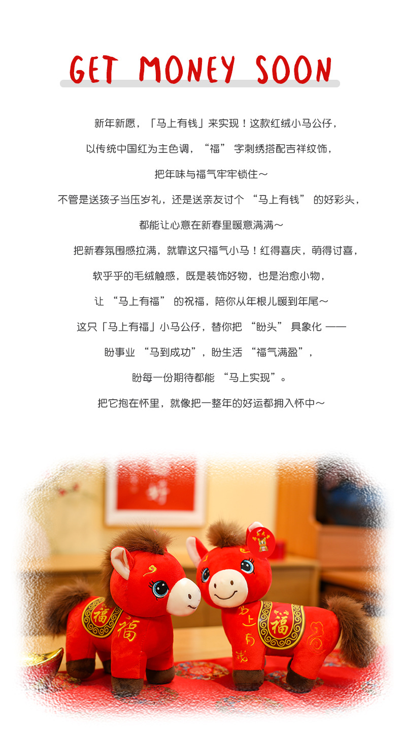 2026马上有钱毛绒玩具马年吉祥公仔生肖马摆件玩偶马年吉祥物批发 English | 投诉