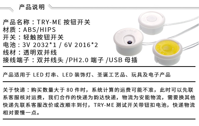 | 6V PH2.0端子 线长12cm | ¥100 | 10000件可售 |