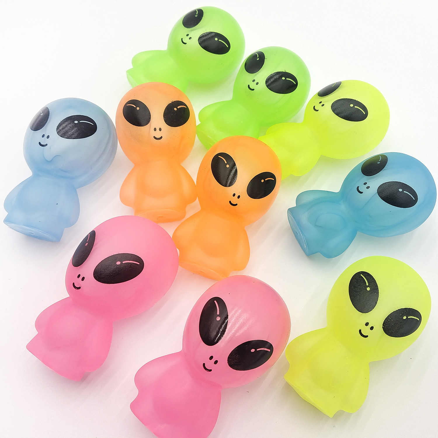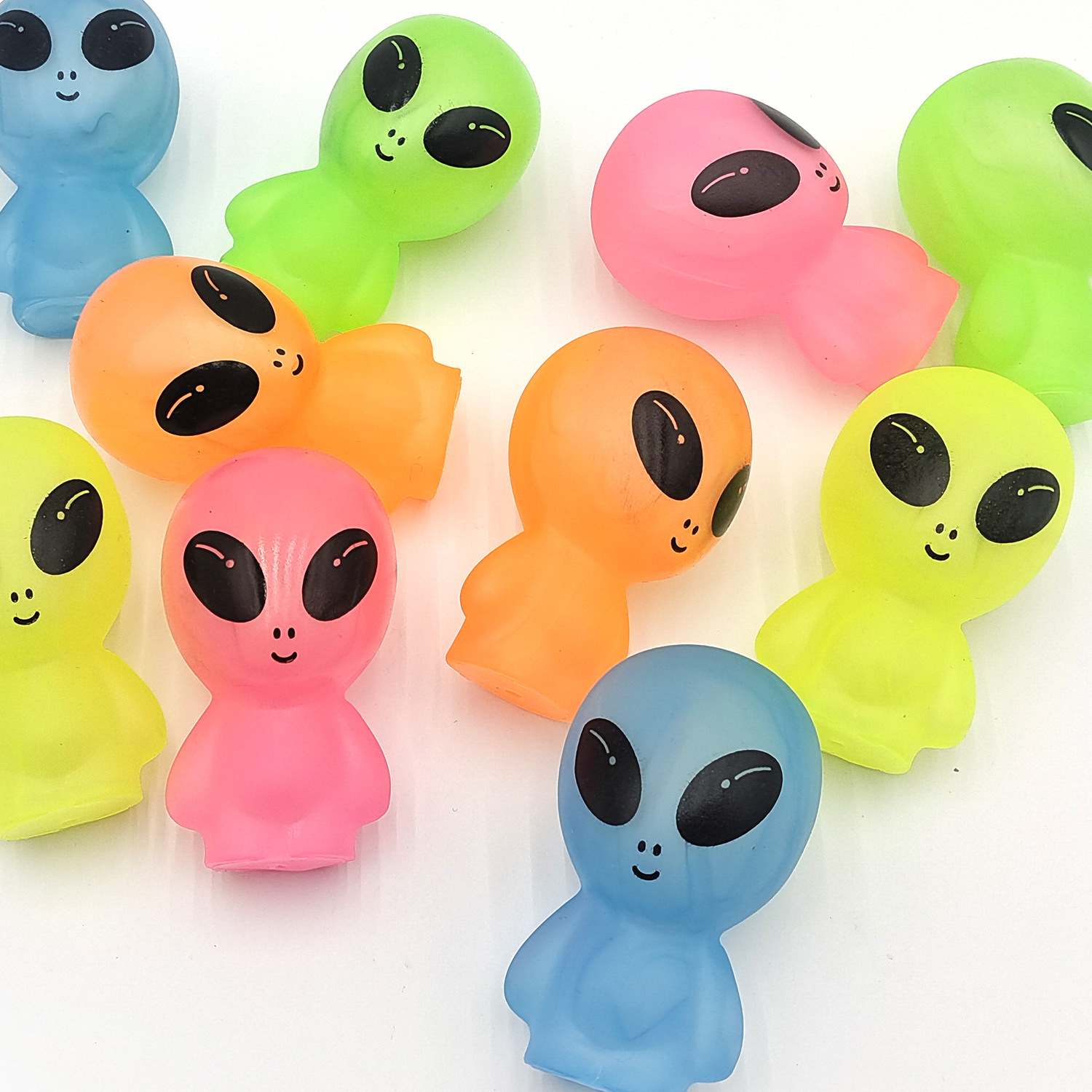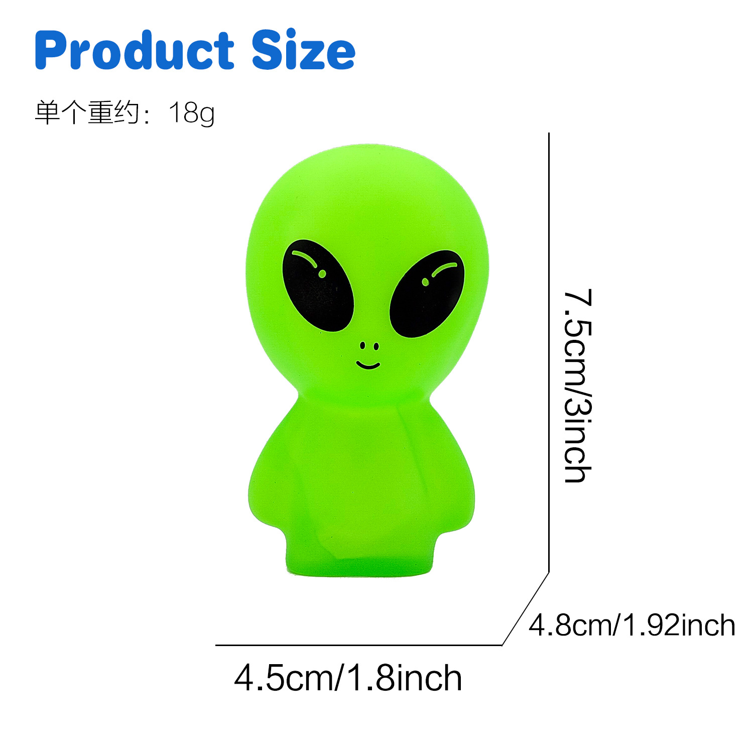 亚马逊新款创意搪胶仿真ET外星人卡通公仔玩偶荧光儿童玩具摆件 English | 投诉