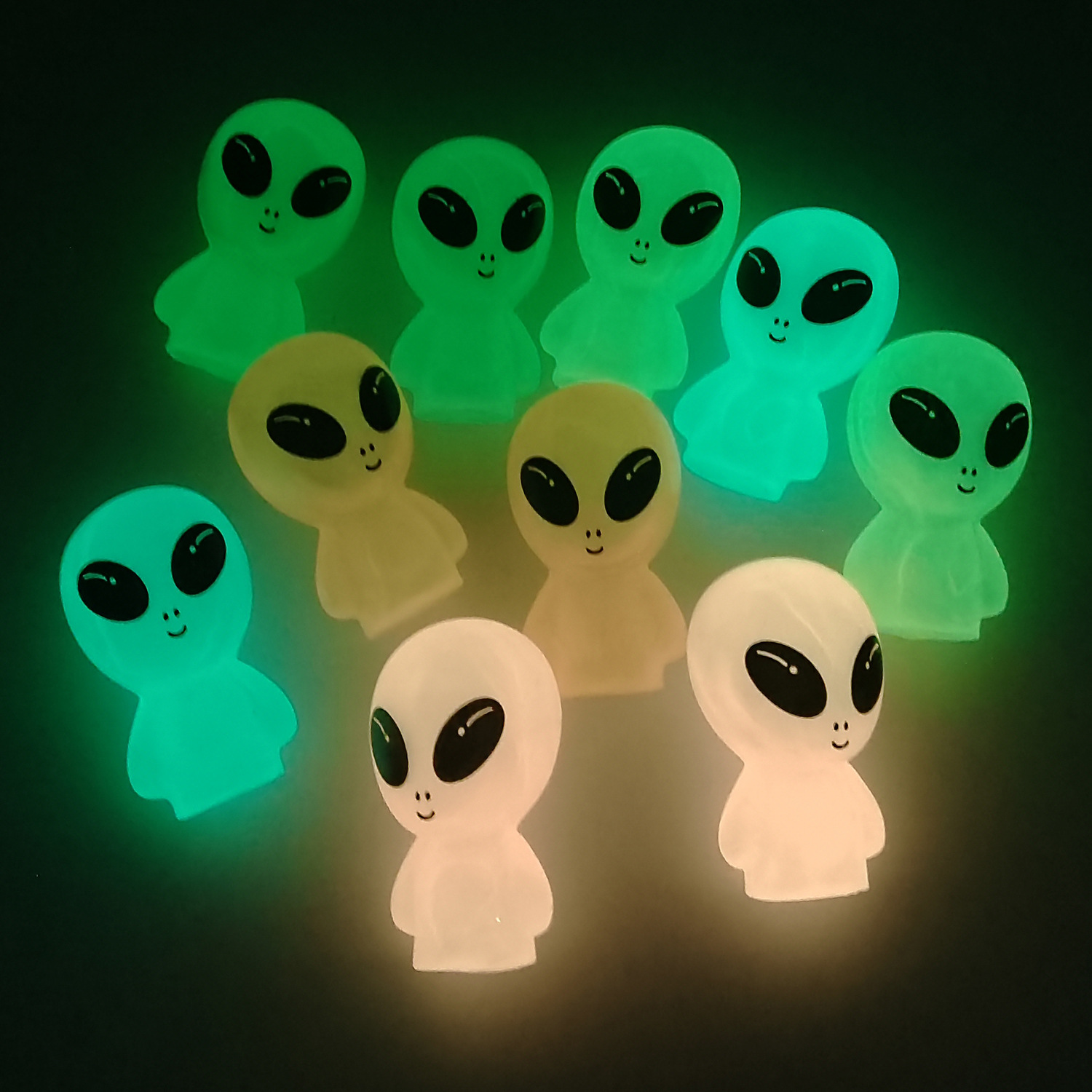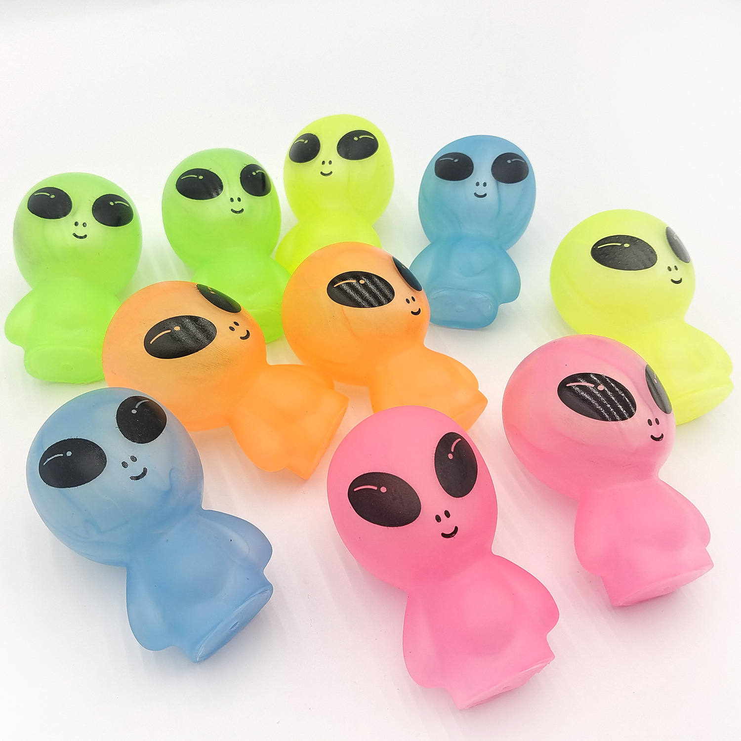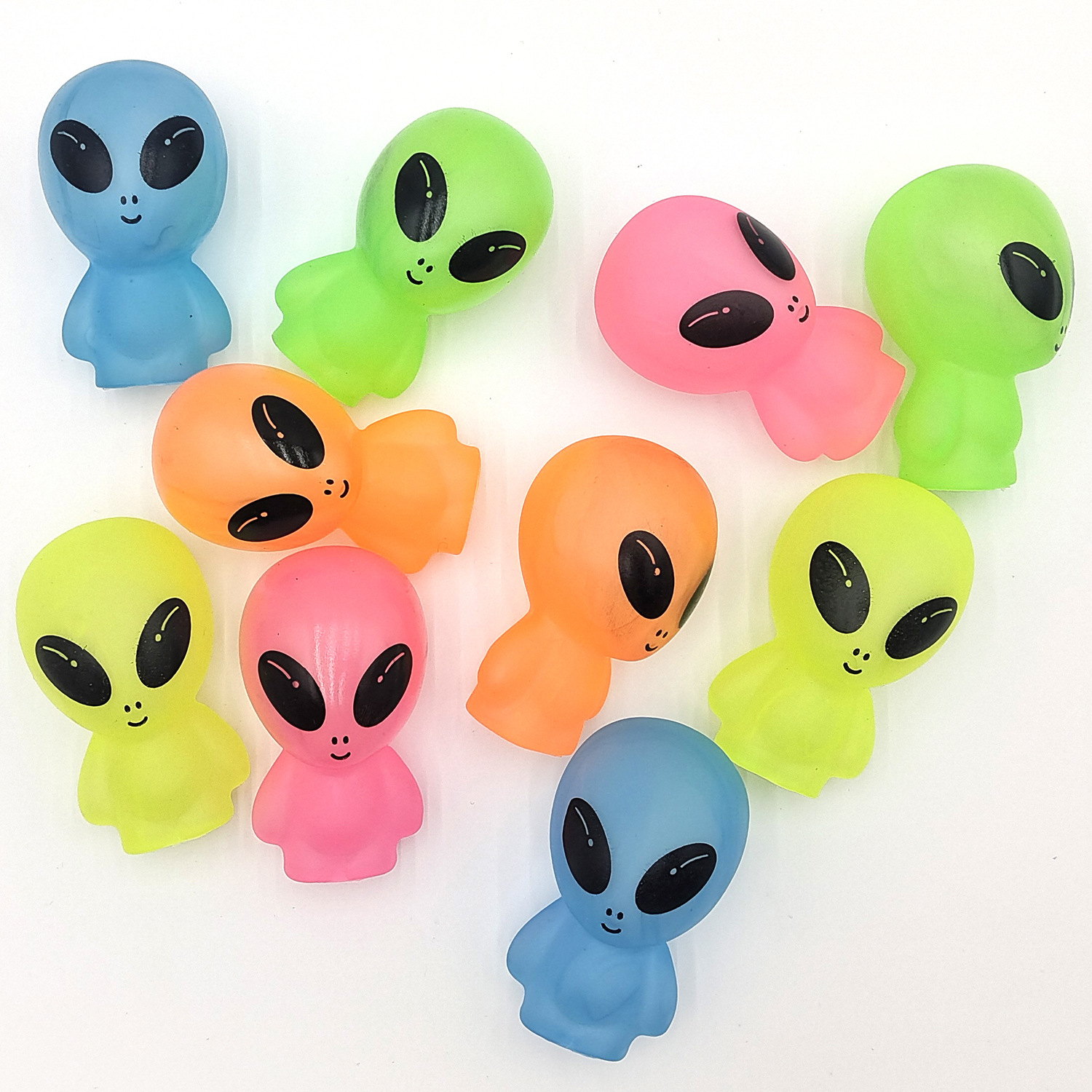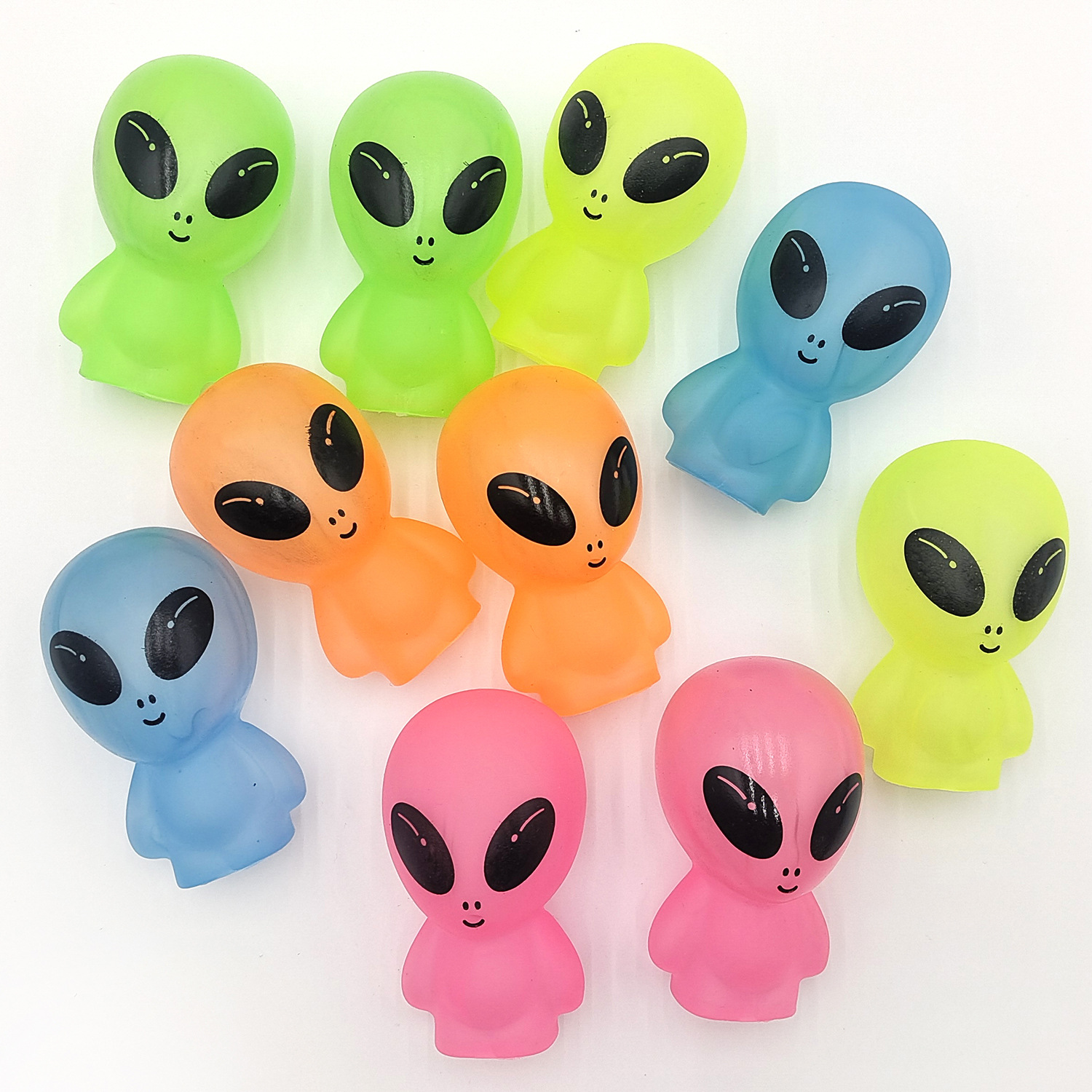 亚马逊新款创意搪胶仿真ET外星人卡通公仔玩偶荧光儿童玩具摆件 English | 投诉