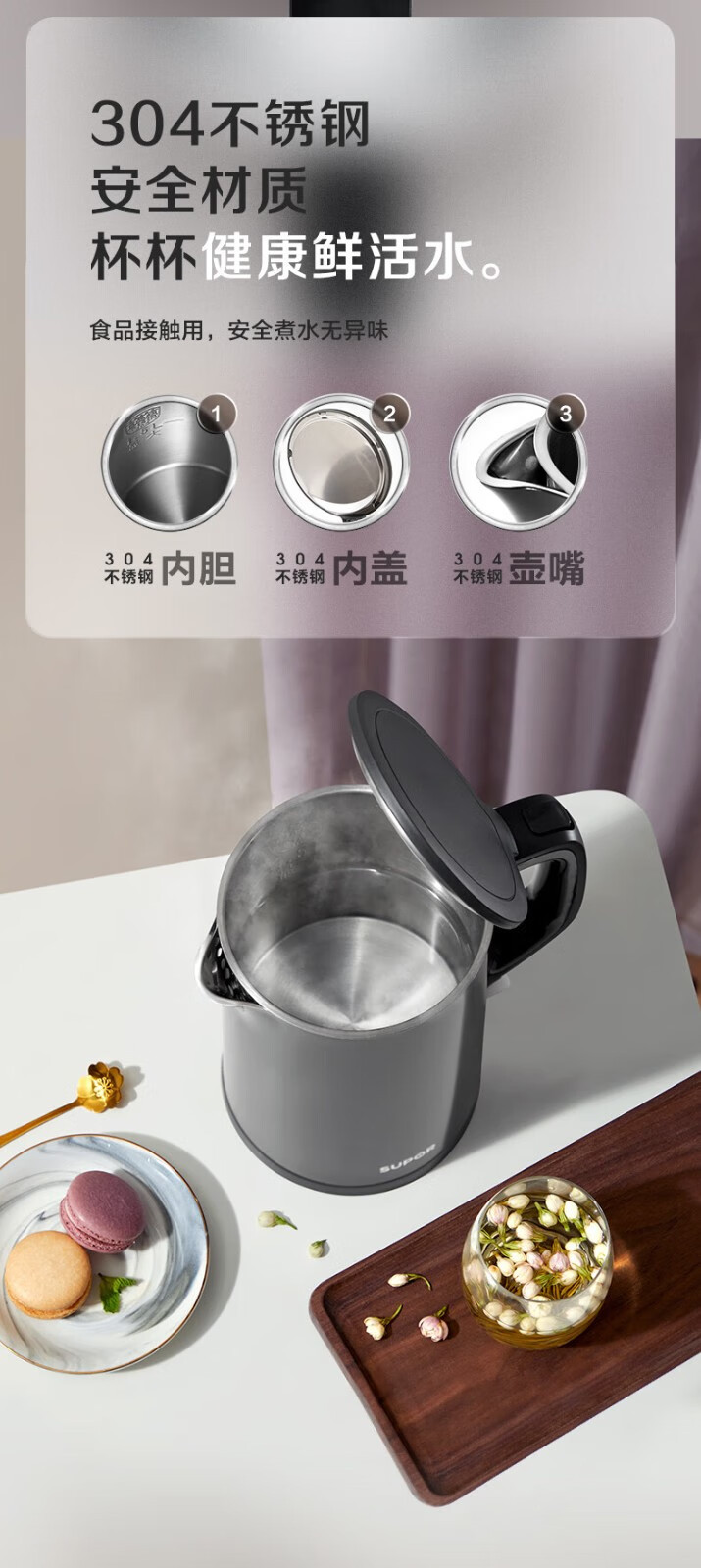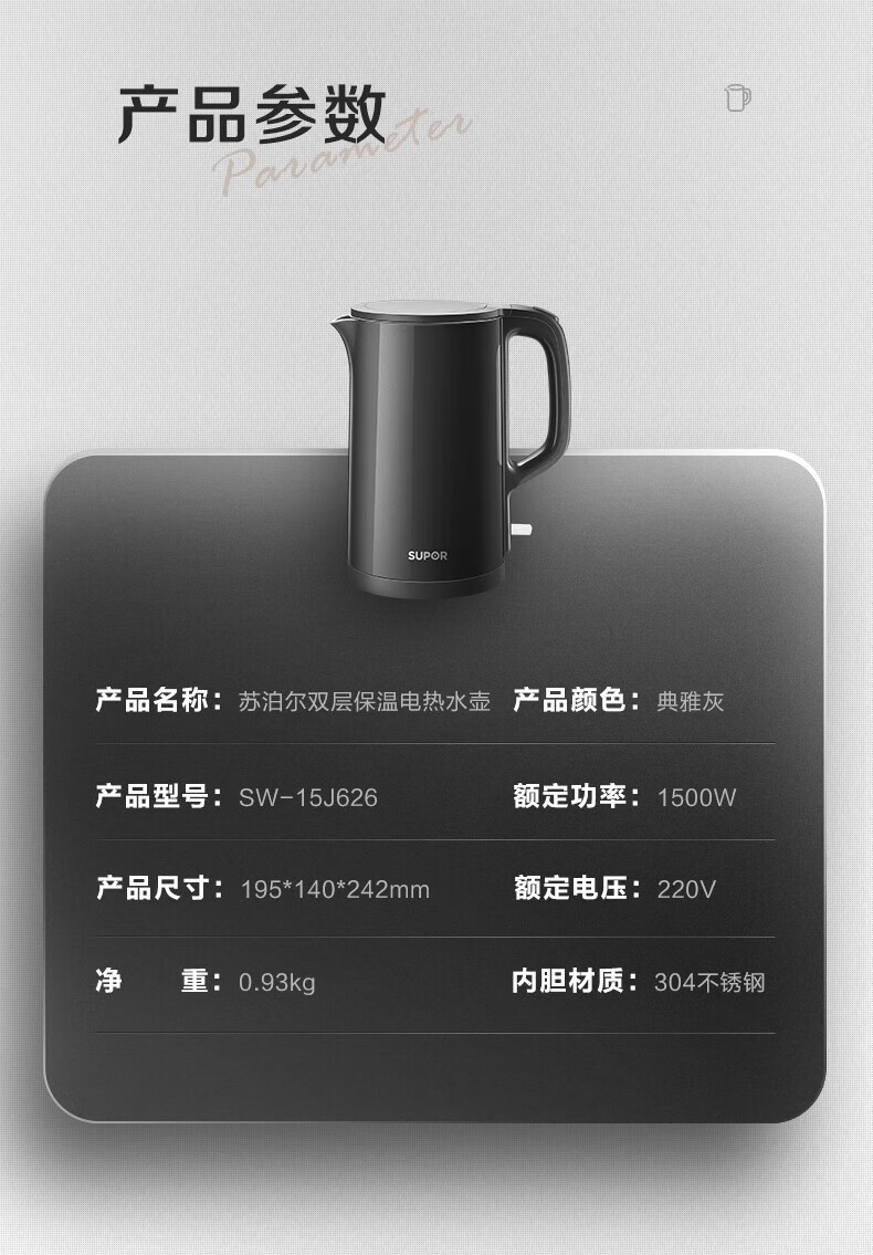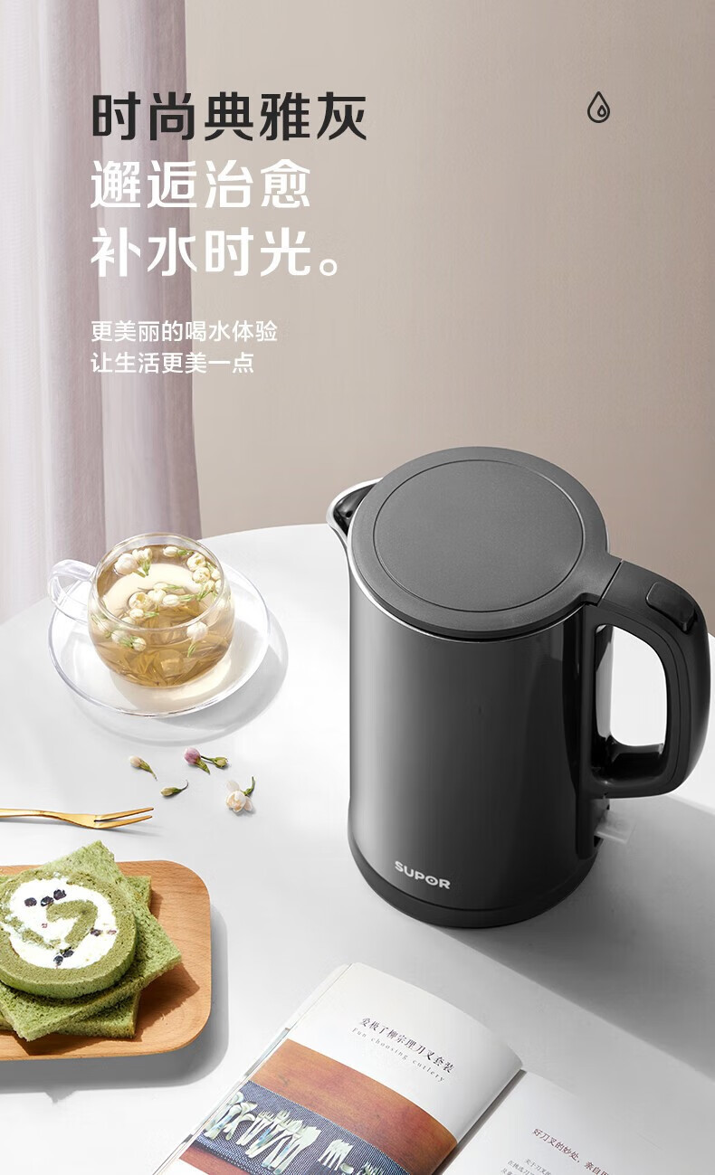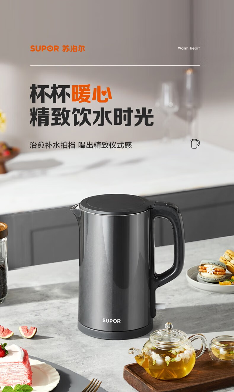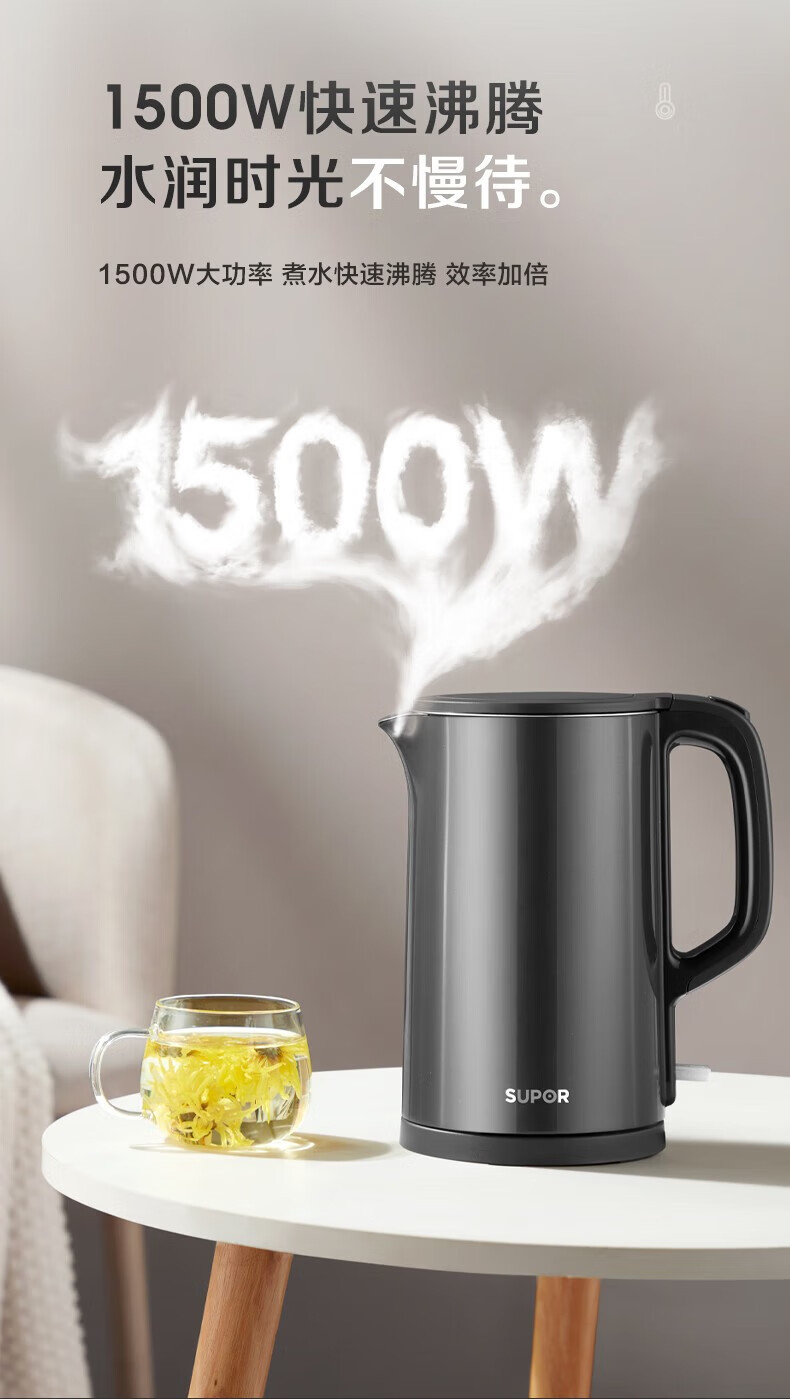 苏泊尔电热水壶304不锈钢烧水壶家用自动断电大容量开水壶电水壶 English | 投诉