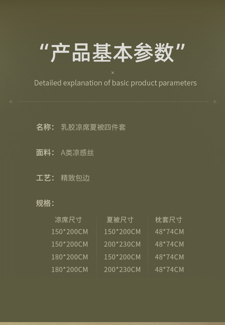 | 四件套:180*200cm乳胶三件套+单夏被200*230cm | ¥20321 | 18501床可售 |