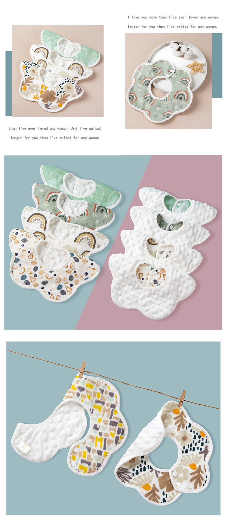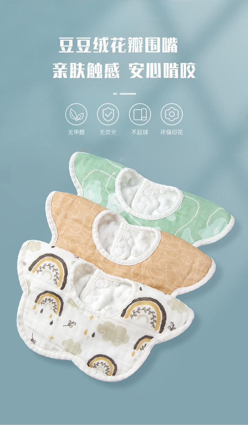 口水兜豆豆绒纯棉纱布围嘴婴儿口水巾可旋转防吐奶围兜宝宝2