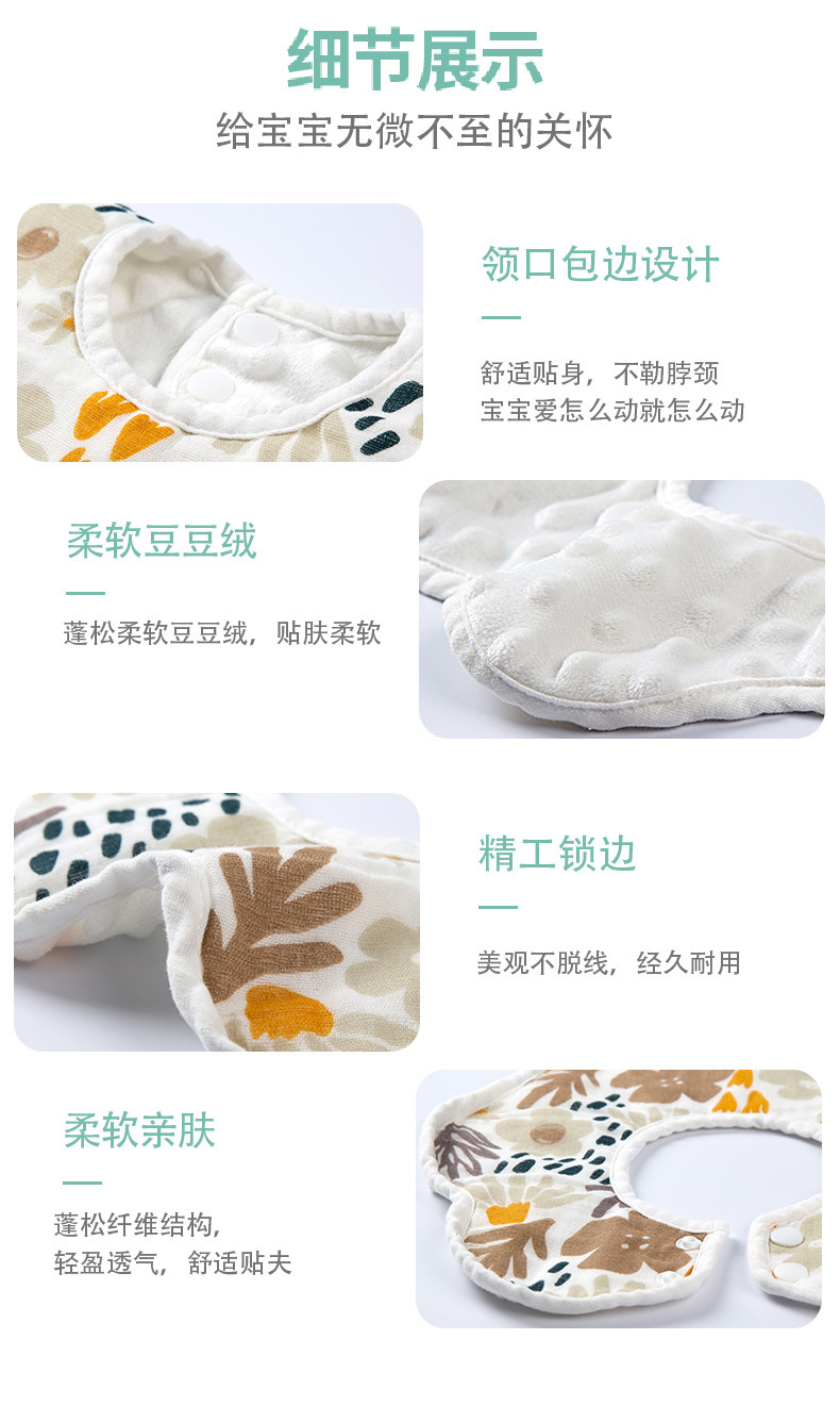 口水兜豆豆绒纯棉纱布围嘴婴儿口水巾可旋转防吐奶围兜宝宝2 投诉