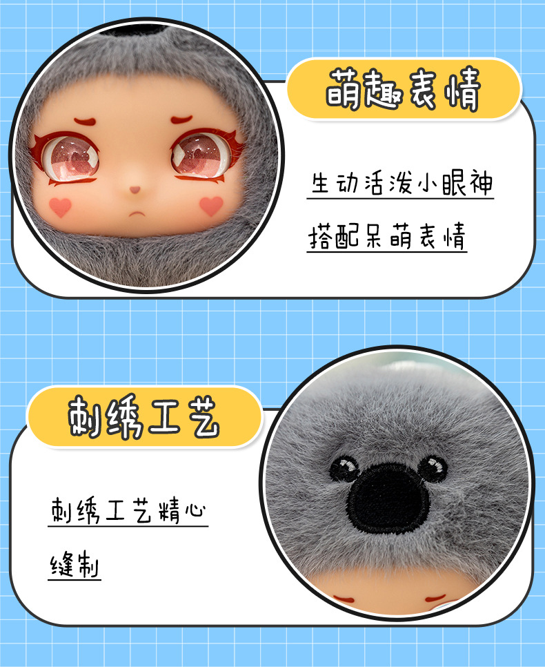 偶遇潮顽娃娃脸毛绒玩具搪胶脸动物考拉小熊猫包包挂饰玩偶公仔 English | 投诉