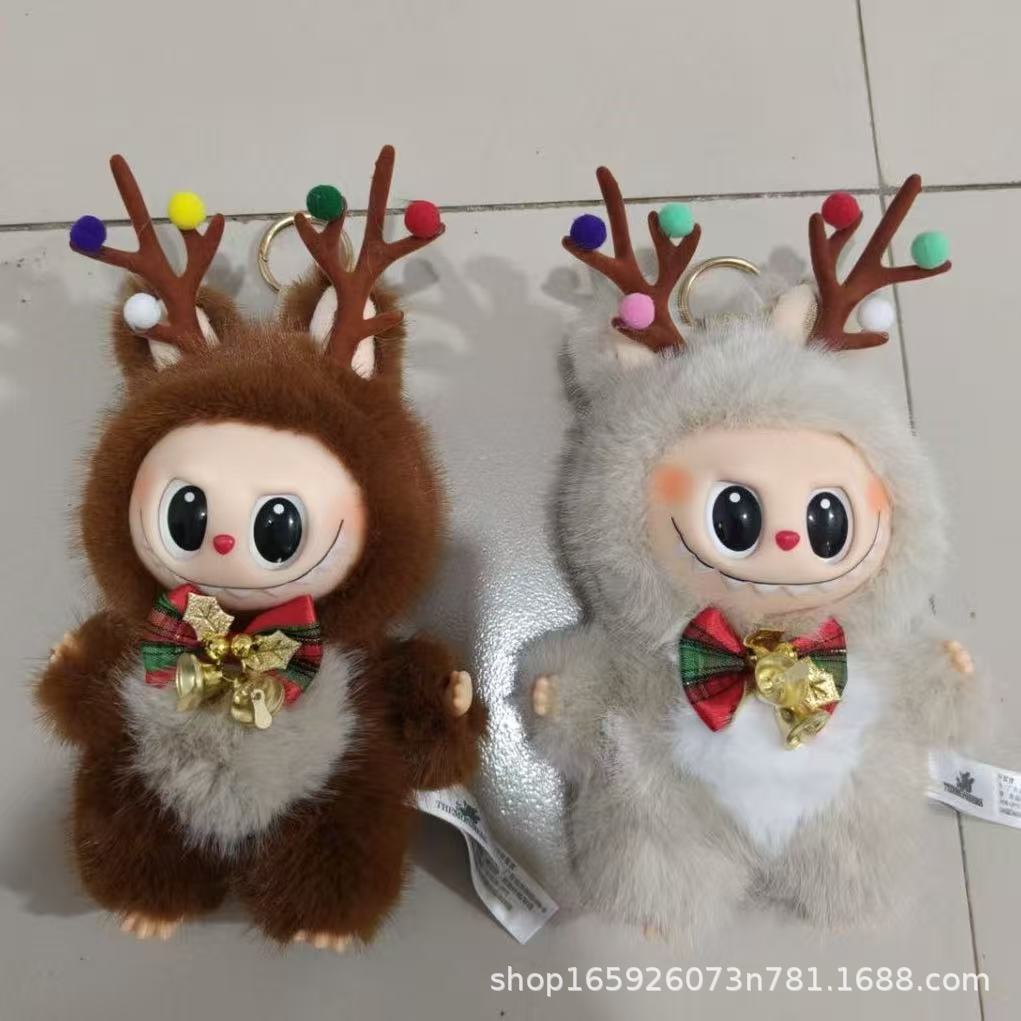 现货爆款圣诞节麋鹿毛绒公仔labubu可爱搪胶拉布布挂件玩偶娃娃机