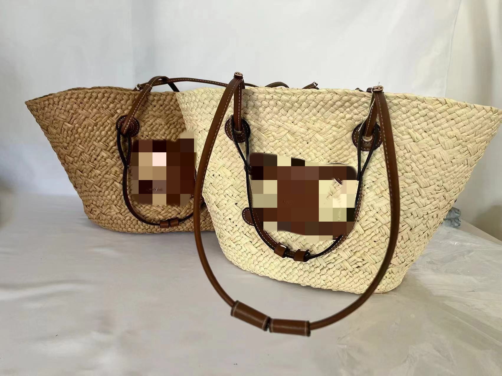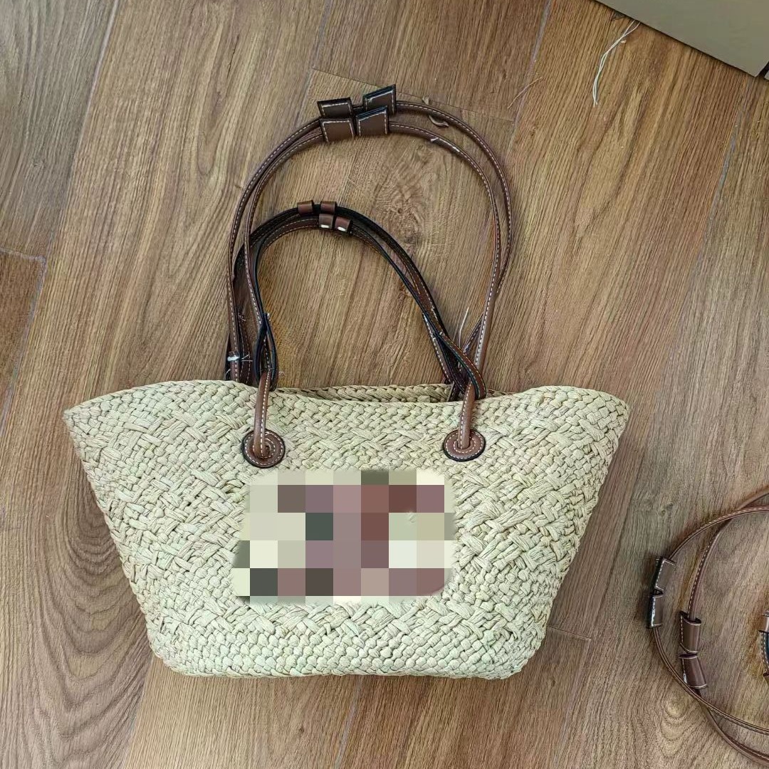 材质: 编织 箱包潮流款式: 托特包 箱包大小: 中 里料质地: 编织 品牌: 盛景 风格: 都市简约 流行元素: 编织 颜色: 米色,咖色 货号: 001 上市年份季节: 2024年夏季