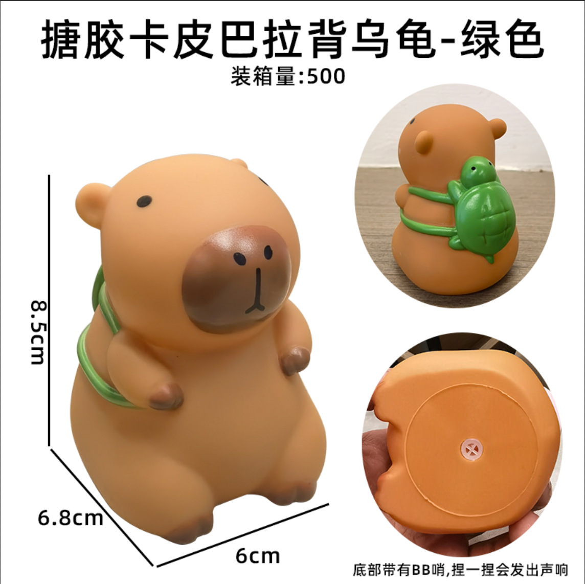 材质: 搪胶 适用年龄: 儿童(4-6岁) 品牌: 其他 造型类别: 动物 包装方式: 袋装 是否多功能: 是 规格: 卡皮巴拉系列 是否外贸: 否 进口地: 中国 造型是否卡通、动漫: 否 货号: 搪胶卡皮巴拉带哨 专利及著作权申请时间: 否 是否有导购视频: 是 产地: 广东 是否专供外贸: 否 3C配置类别: 14岁以上的玩具 是否跨境出口专供货源: 是 重量: 0.114 kg/只