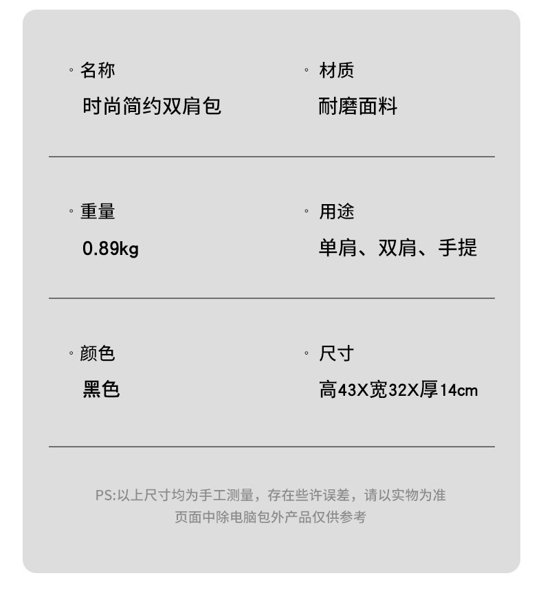 材质: PU 功能: 可收纳 容纳电脑尺寸: 15英寸 品牌: 其他 背负系统: 气垫背带 里料质地: 涤纶 皮质特征: 其他 颜色: 黑色 适用性别: 中性/男女均可 适用场景: 日常搭配 风格: 休闲旅行 容量: 20-35L 上市年份季节: 2025夏季 货号: ds4371 流行元素: 7809720 有可授权的自有品牌: 否