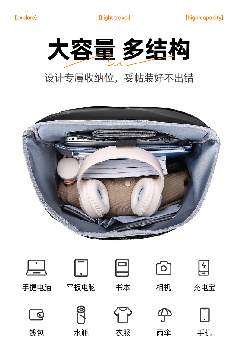 跨境商务大容量防水双肩包多功能休闲百搭外出旅行通勤时尚背包