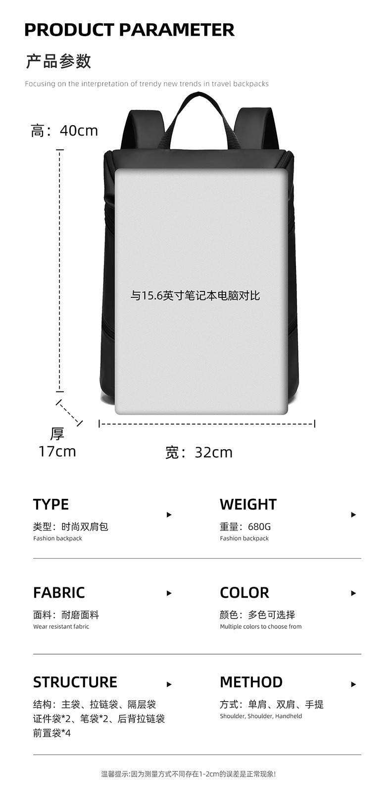跨境商务大容量防水双肩包多功能休闲百搭外出旅行通勤时尚背包 投诉
