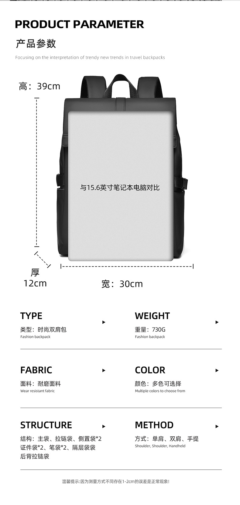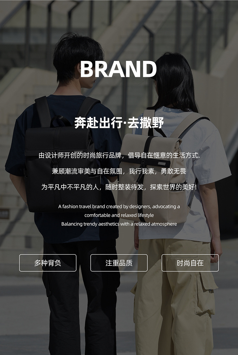 新款跨境男士双肩包潮流高级感休闲背包简约旅行双肩包男商务通勤 投诉