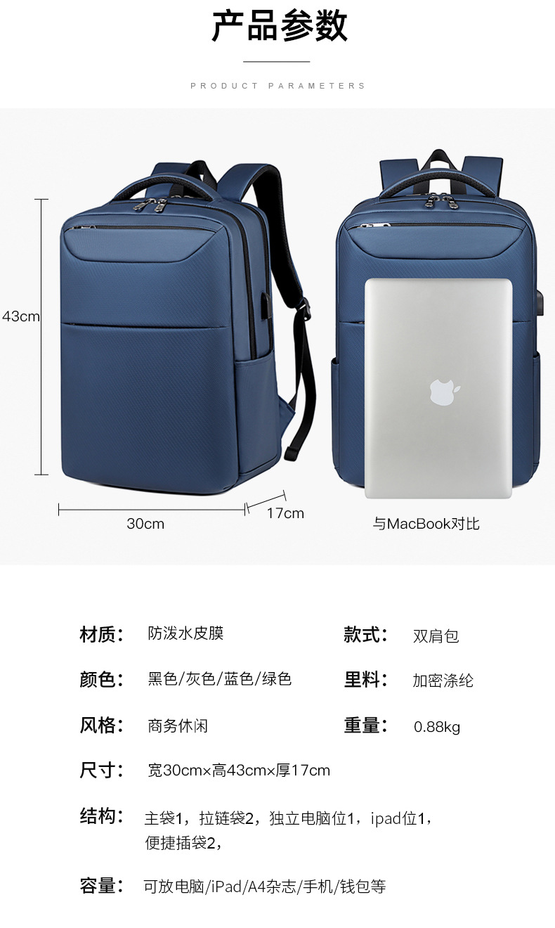 材质: 牛津布 功能: 防水 容纳电脑尺寸: 16英寸 品牌: 其他 背负系统: 弧形肩带 里料质地: 涤纶 皮质特征: 无 颜色: 灰色,黑色,绿色,蓝色 尺寸: 均码 适用性别: 中性/男女均可 适用场景: 商务出行 风格: 商务通勤 容量: 20-35L 上市年份季节: 2025年春季 货号: xd&902 图案: 纯色 流行元素: 车缝线 有可授权的自有品牌: 否