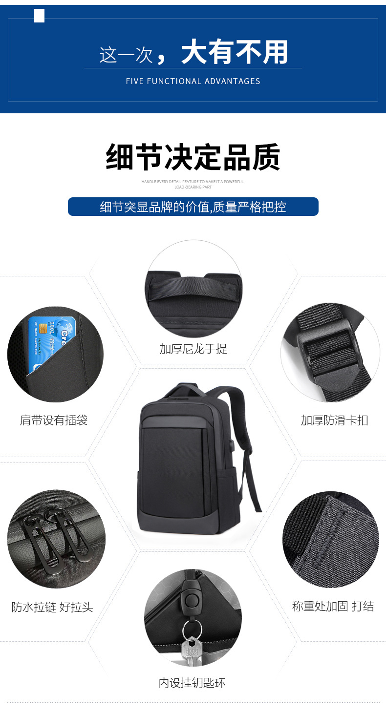 定制跨境男士商务通勤电脑背包差旅户外休闲旅游书包大容量双肩包 投诉