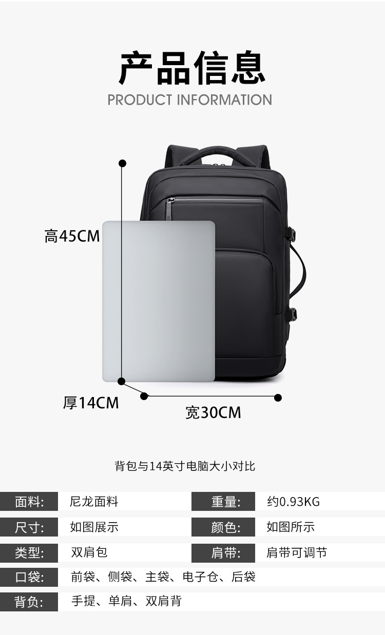 材质: 尼龙 功能: 透气 容纳电脑尺寸: 15英寸 背负系统: 弧形肩带 里料质地: 涤纶 皮质特征: 牛津布 颜色: 灰色,黑色,蓝色 尺寸: 均码 适用性别: 中性/男女均可 适用场景: 商务出行 风格: 街头潮流 容量: 20-35L 上市年份季节: 2025年春季 货号: ysc&4001 图案: 纯色 流行元素: 褶皱 有可授权的自有品牌: 是