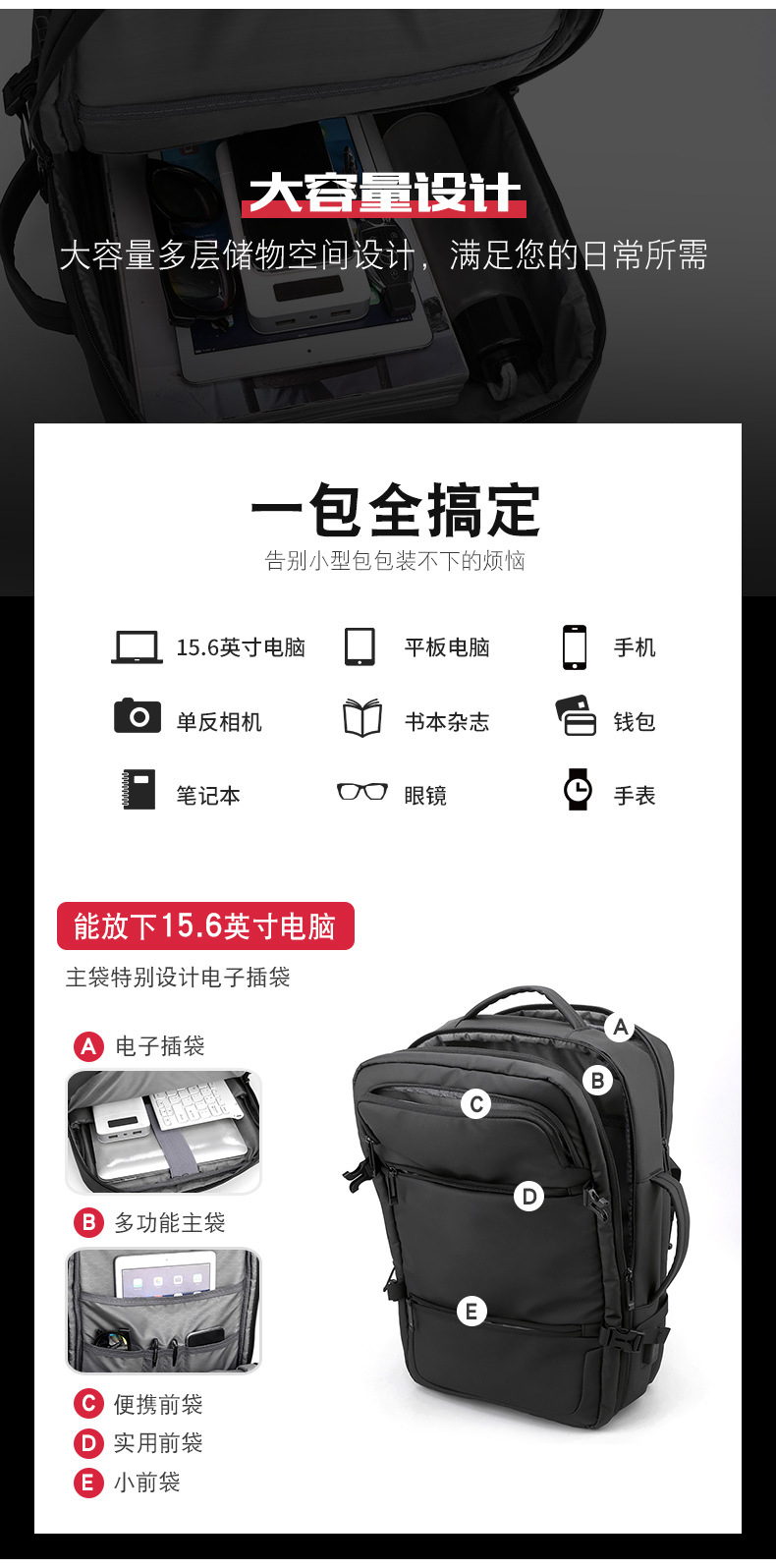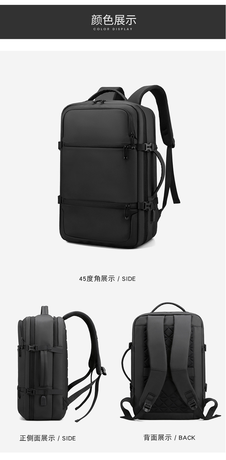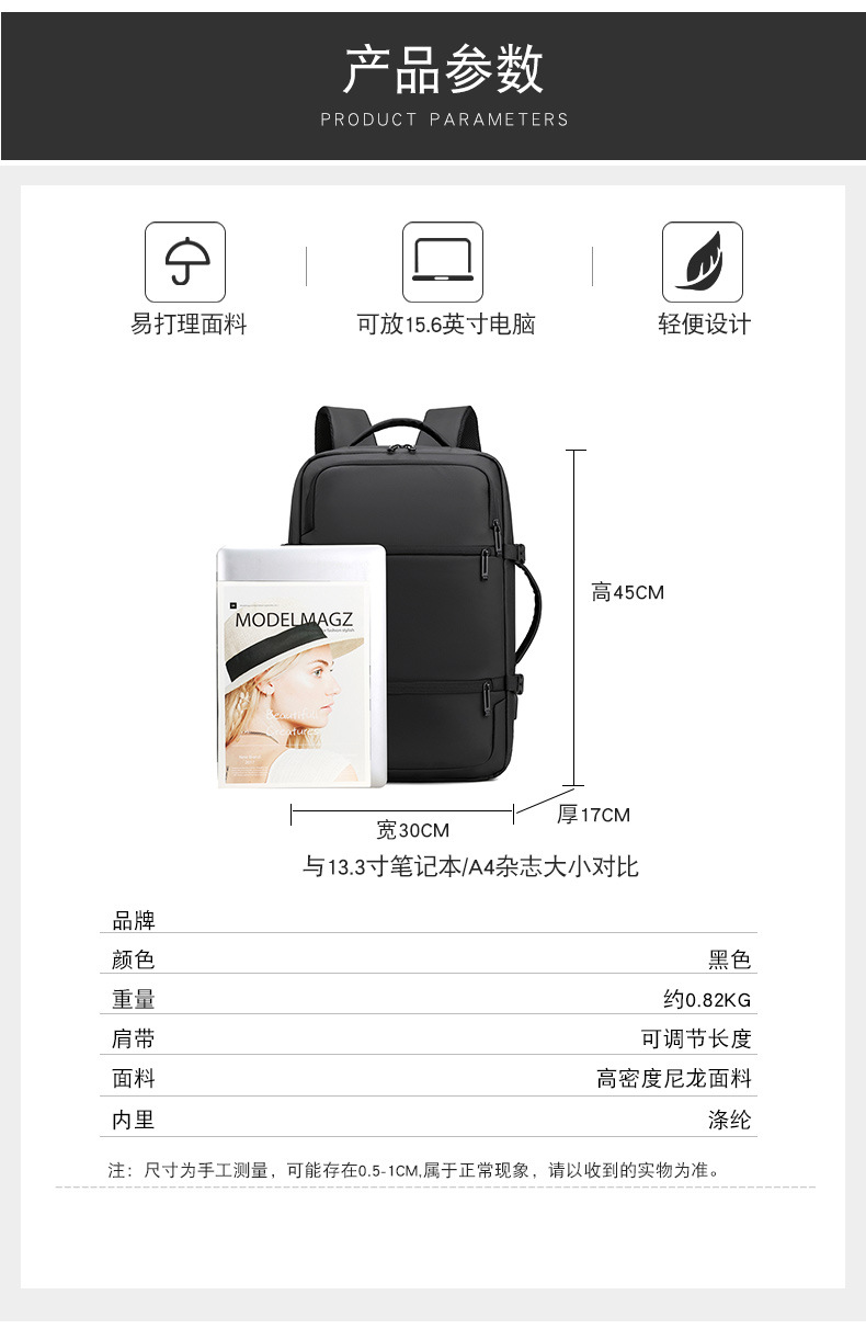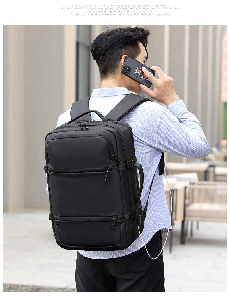 材质: 牛津布 功能: 透气 容纳电脑尺寸: 16英寸 品牌: 无 背负系统: 生理曲线背板 里料质地: 牛津布 皮质特征: 复合牛皮 颜色: 黑色 尺寸: 均码 适用性别: 男 适用场景: 商务出行 风格: 商务通勤 容量: 56-75L 上市年份季节: 2024年春季 货号: YC&2026 图案: 纯色 流行元素: 其他 有可授权的自有品牌: 是