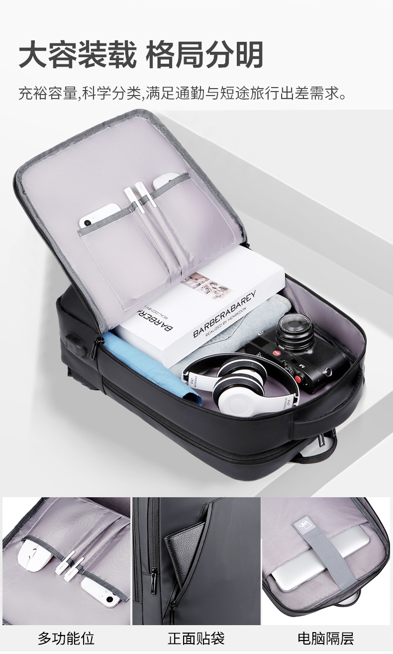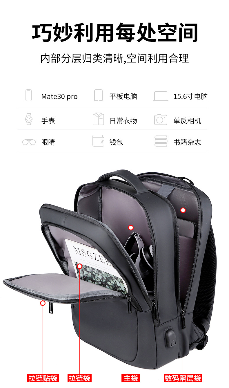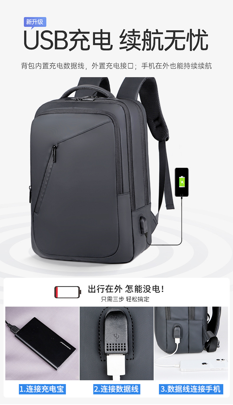 新款商务背包商务大容量USB充电多功能双肩包男女均用休闲旅行包 投诉