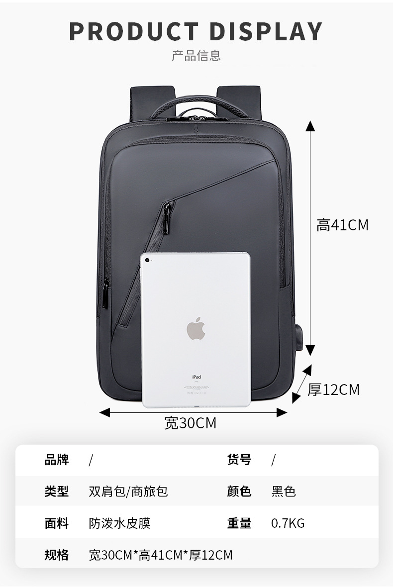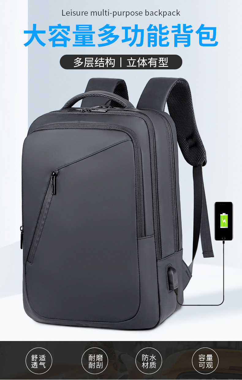 新款商务背包商务大容量USB充电多功能双肩包男女均用休闲旅行包