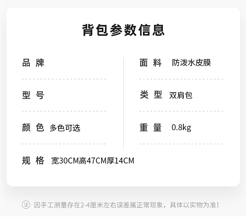 2025新款全新背包时尚简约双肩包登山包外出旅行包学生包电脑包包 投诉