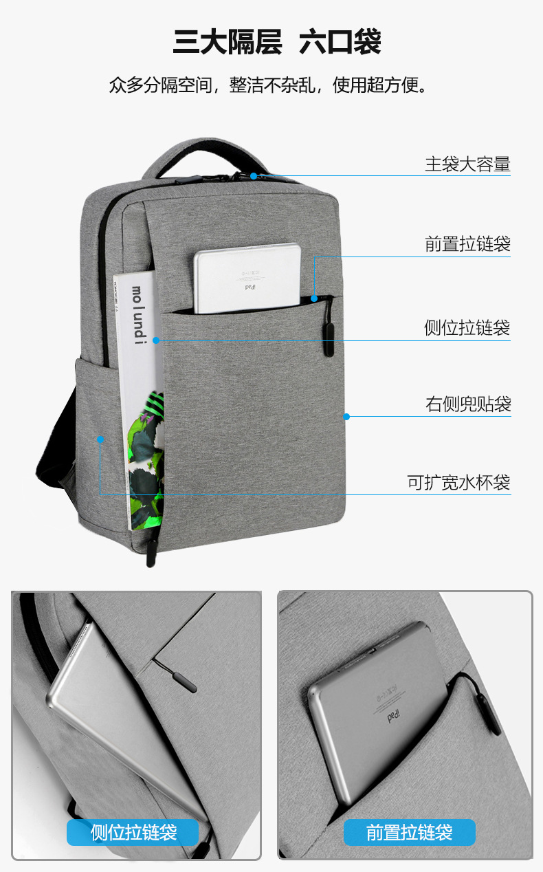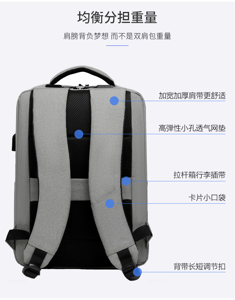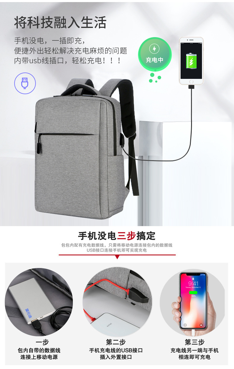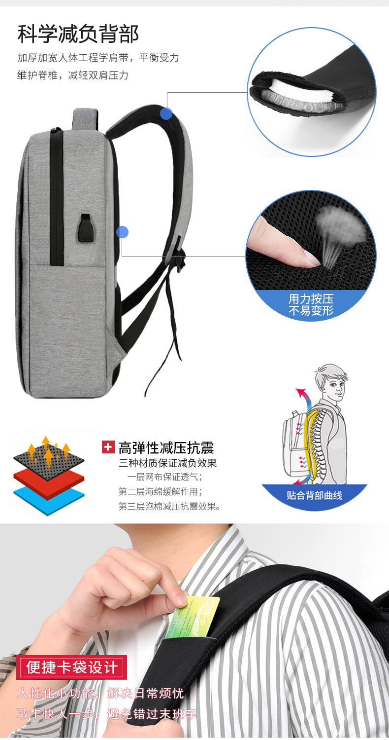 跨境背包男士高级感充电笔记本电脑包女休闲印LOGO商务简约双肩包 投诉