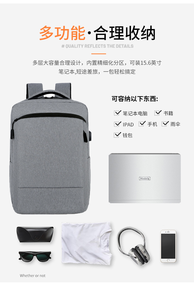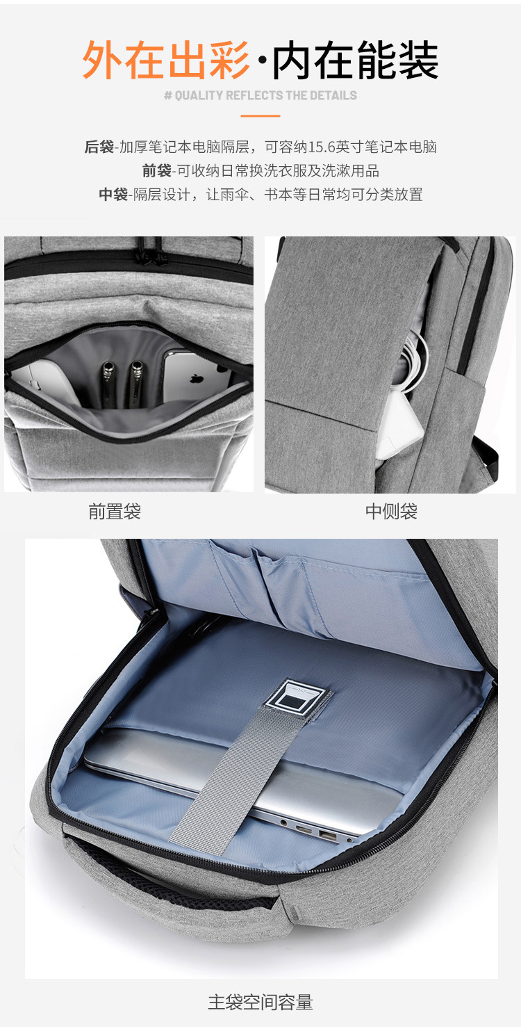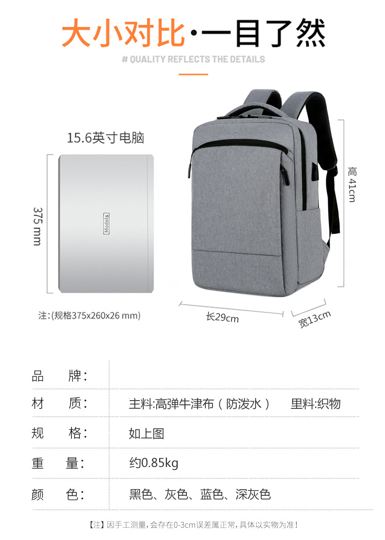 材质: 牛津布 功能: 防水 容纳电脑尺寸: 16英寸 品牌: 其他 背负系统: 弧形肩带 里料质地: 涤纶 皮质特征: 无 颜色: 浅灰色,深灰色,黑色,深蓝色 尺寸: 均码 适用性别: 中性/男女均可 适用场景: 商务出行 风格: 商务通勤 容量: 20-35L 上市年份季节: 2025年春季 货号: YDYL&1105 图案: 纯色 流行元素: 车缝线 有可授权的自有品牌: 否