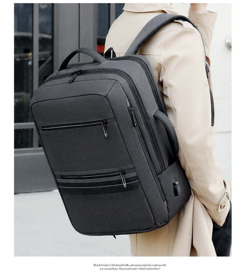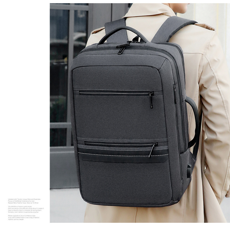 材质: 牛津布 功能: 透气 容纳电脑尺寸: 14英寸 品牌: 其他 背负系统: 弧形肩带 里料质地: 涤纶 颜色: 灰色,蓝色,深蓝色,黑色,黑色/皮膜款 适用性别: 男 适用场景: 日常搭配 风格: 都市简约 容量: 20-35L 上市年份季节: 2024年秋季 货号: HQSJL1137 图案: 纯色 流行元素: 车缝线 有可授权的自有品牌: 否