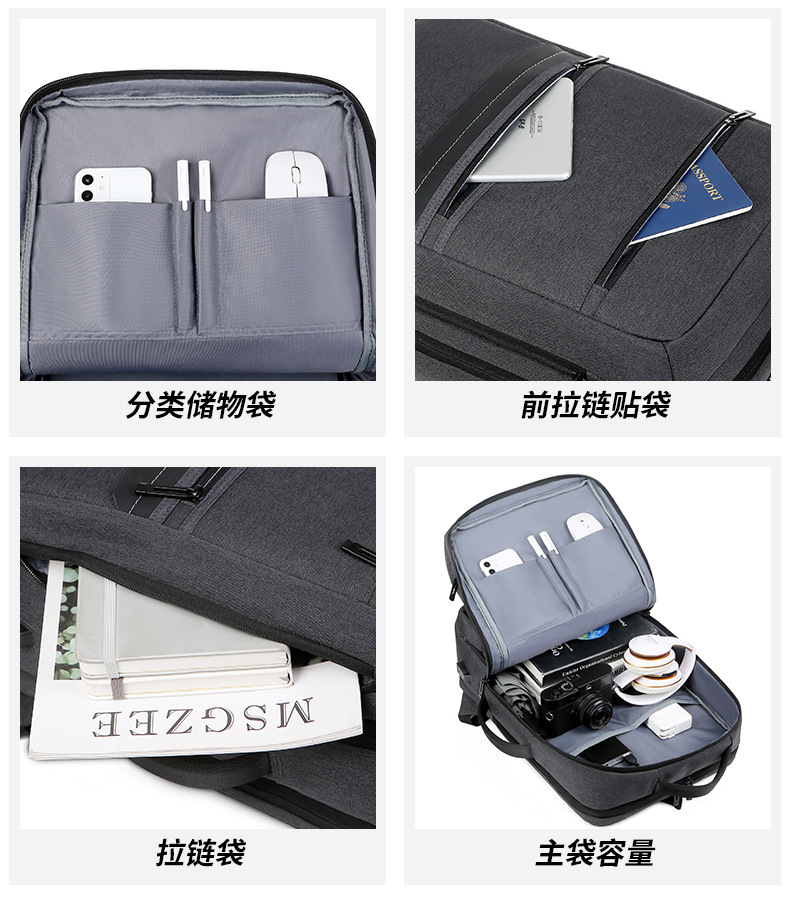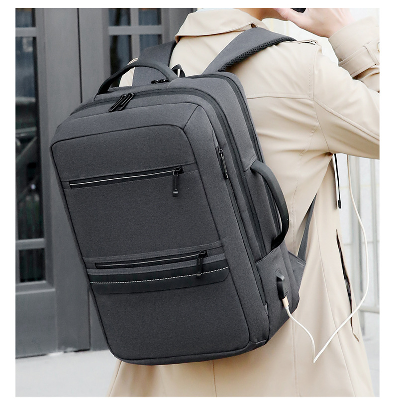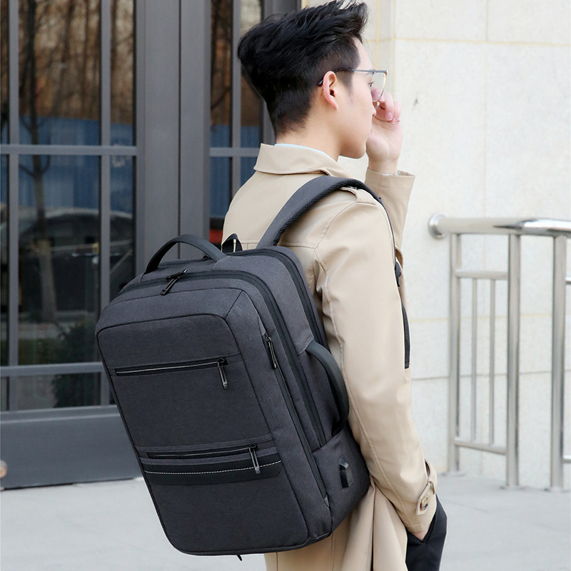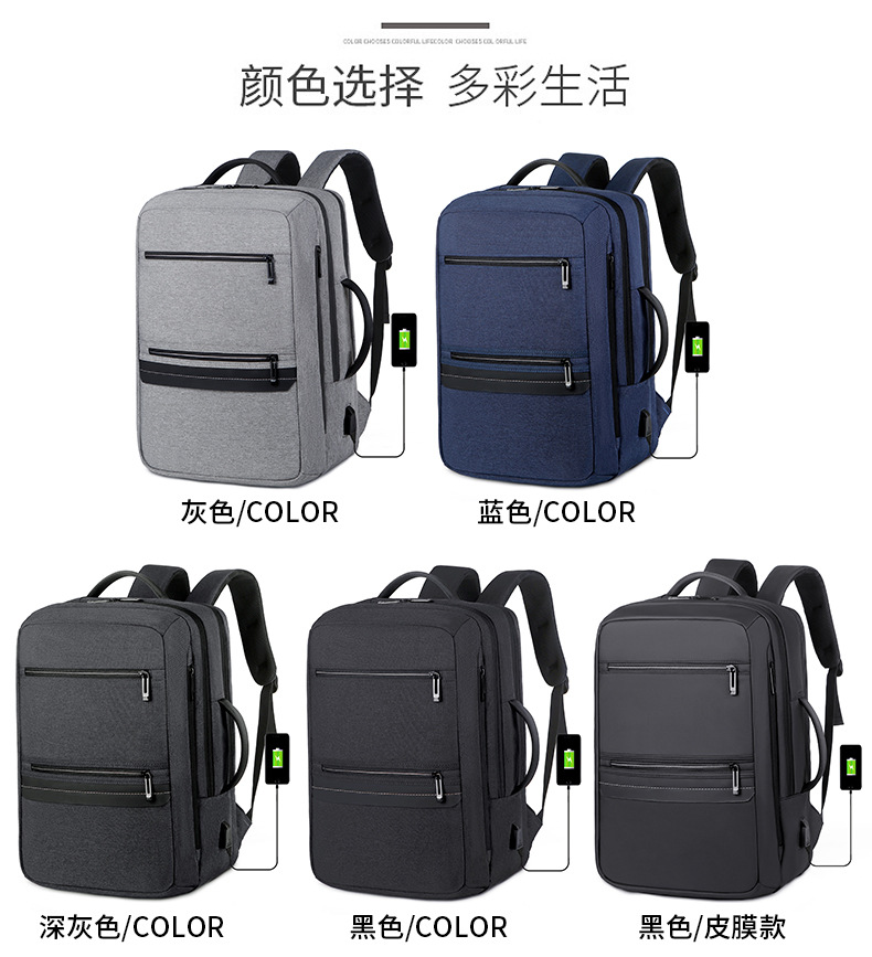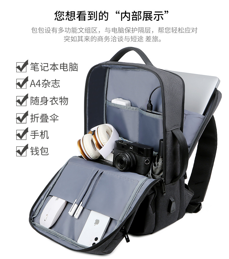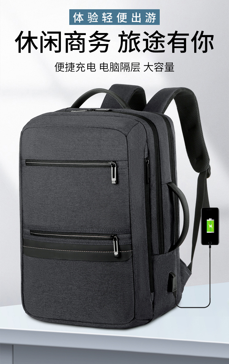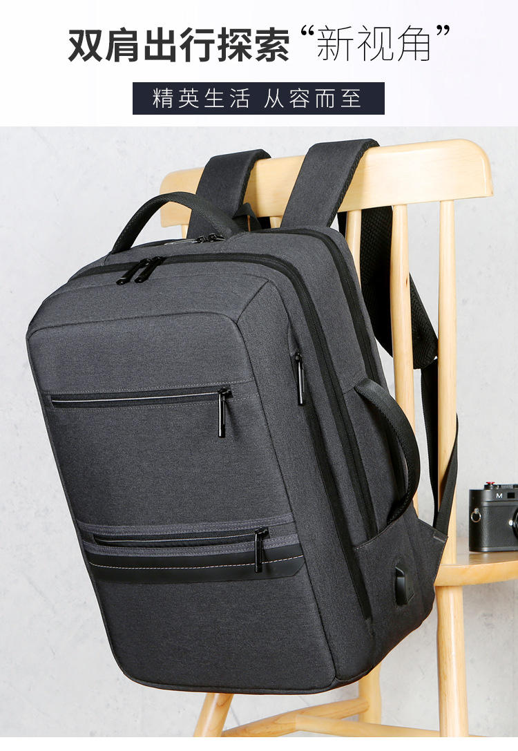 商务双肩背包男笔记本电脑包大容量外出旅行包USB充电接口双肩包