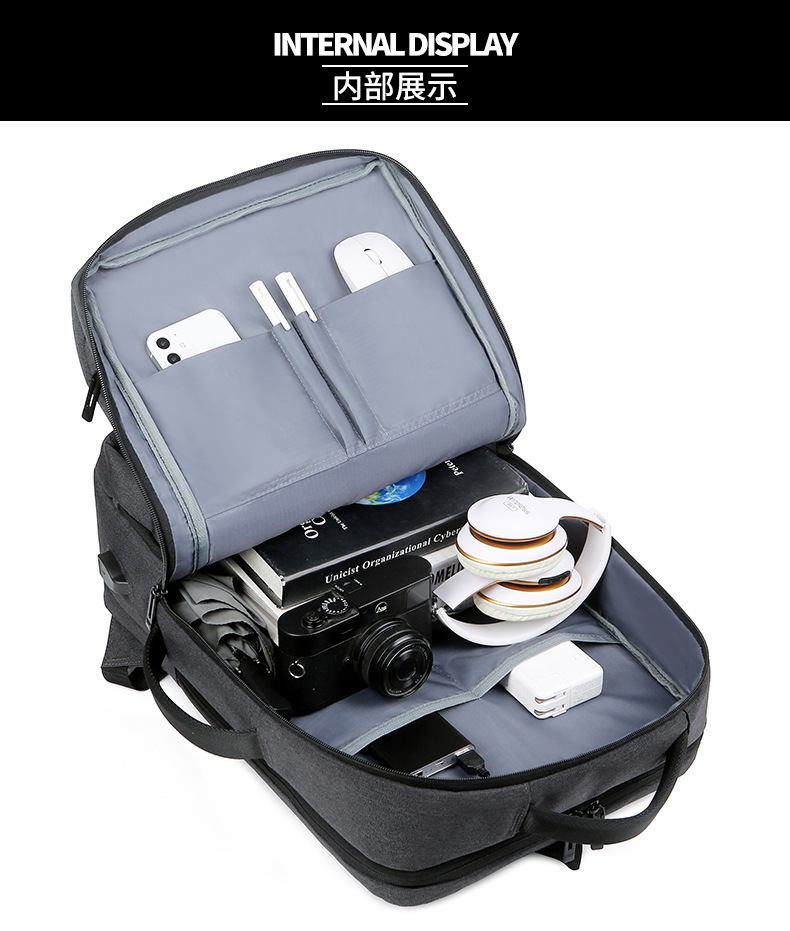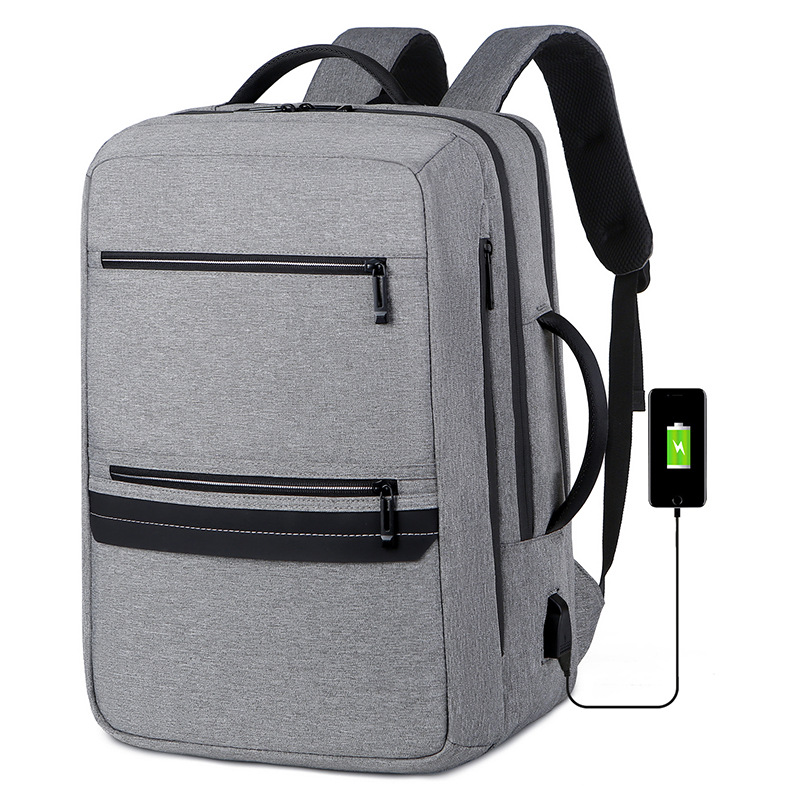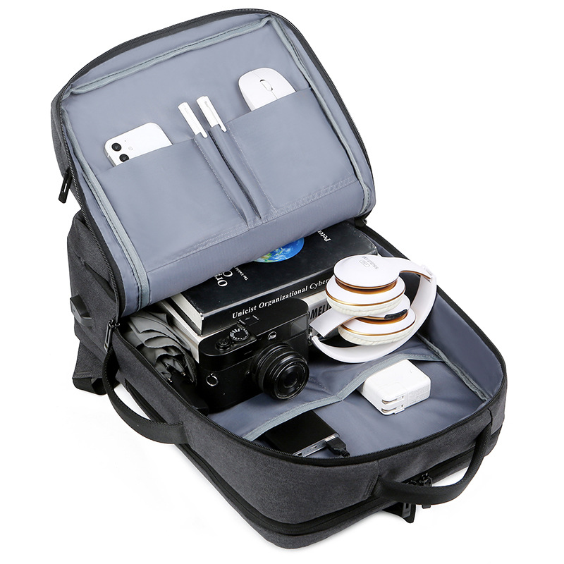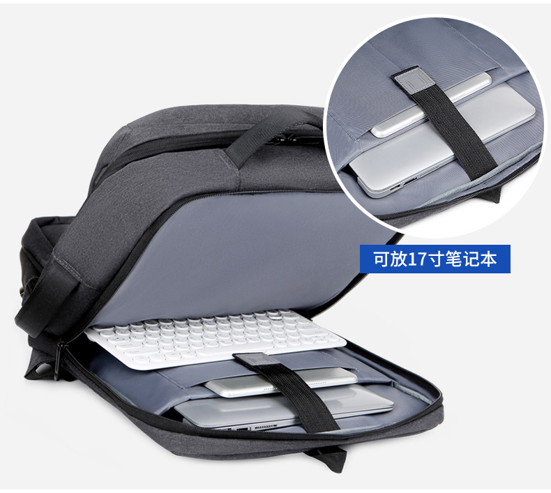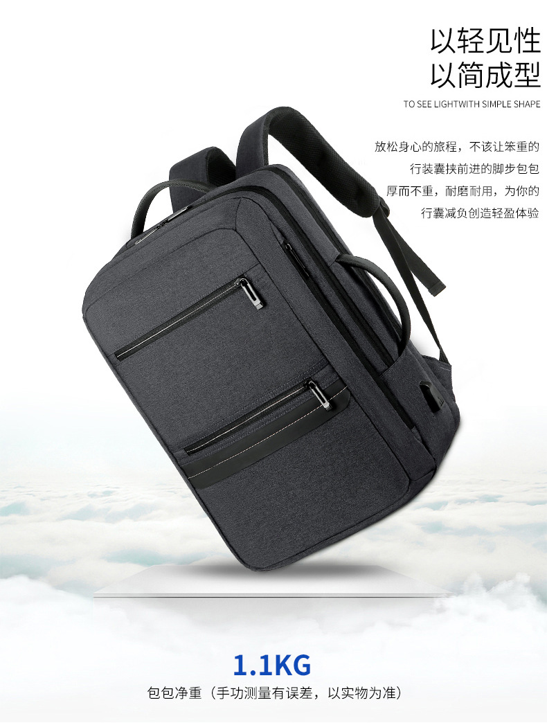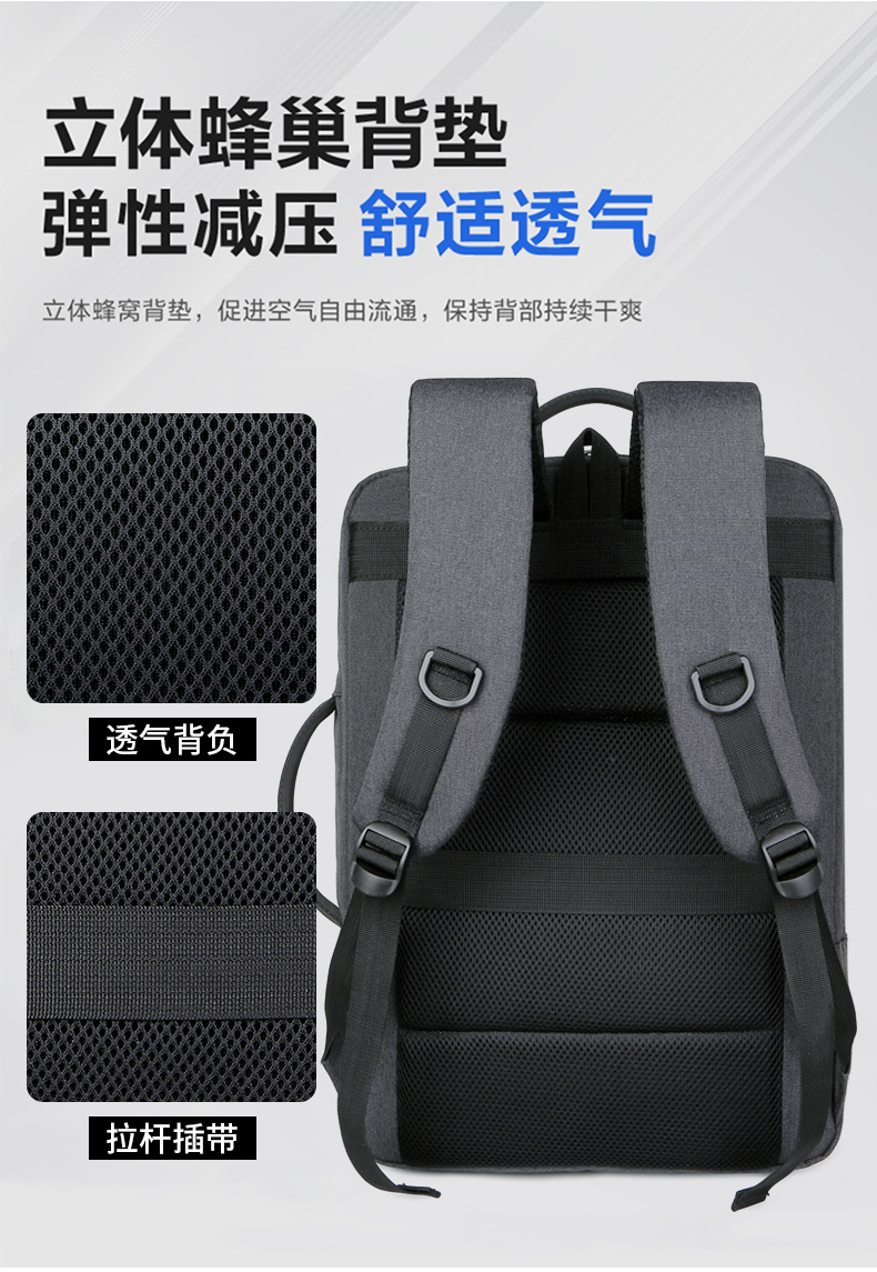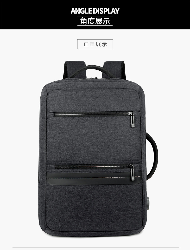 商务双肩背包男笔记本电脑包大容量外出旅行包USB充电接口双肩包
