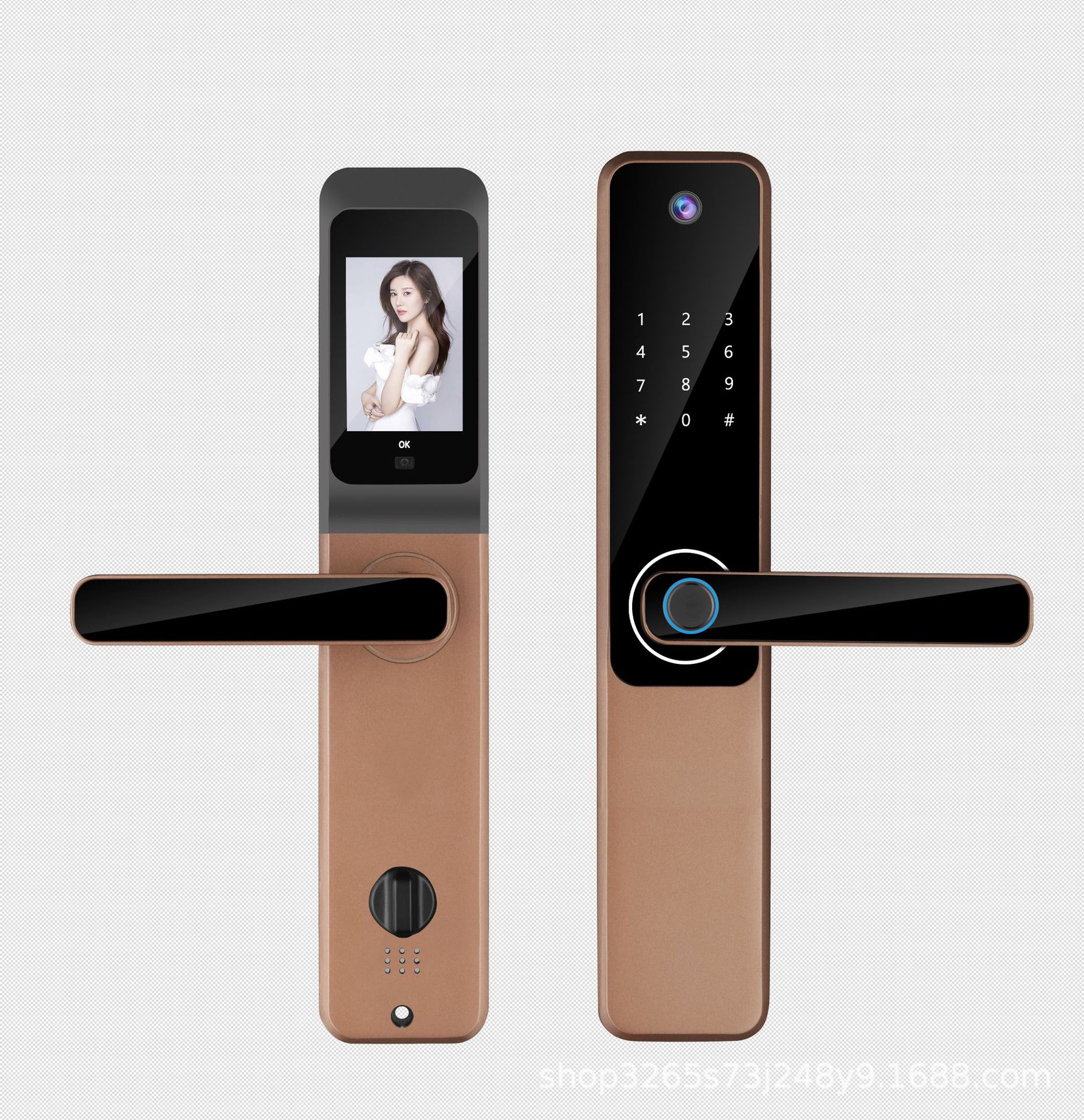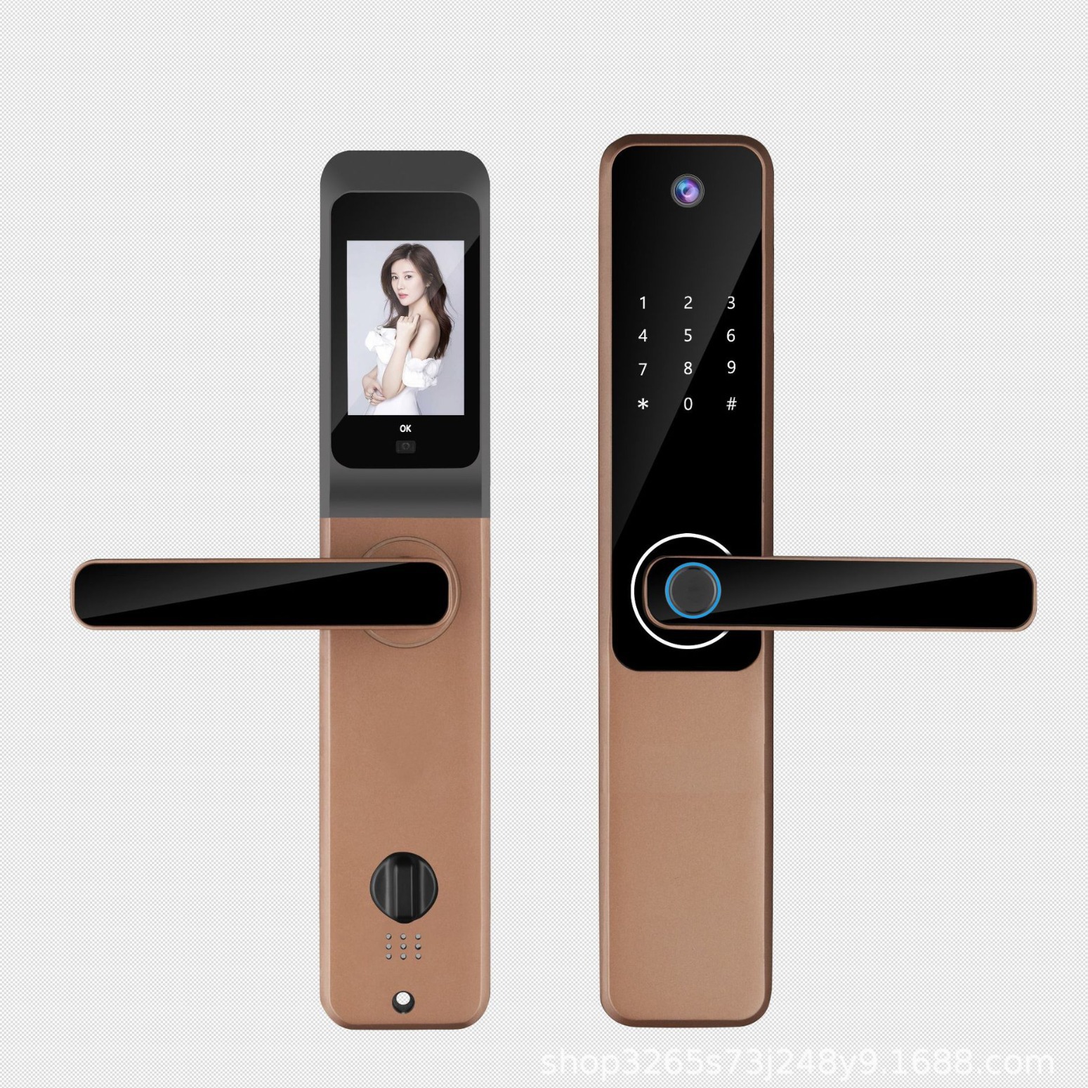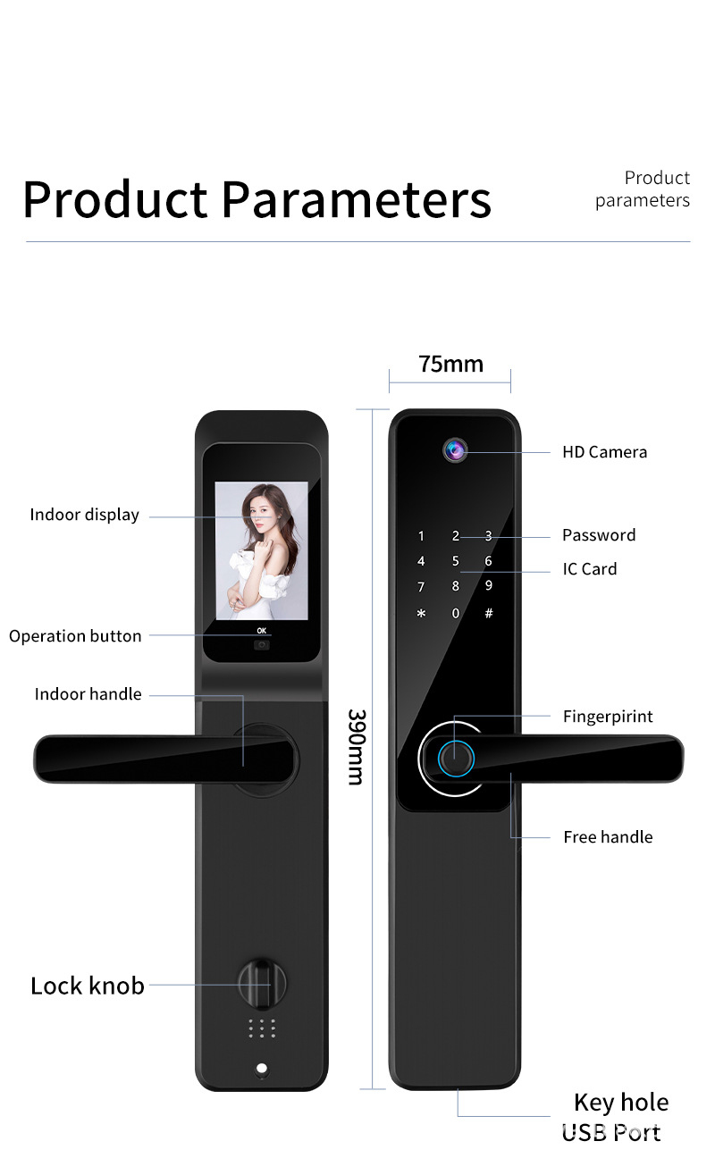 智能家居一握开涂鸦猫眼带指纹密码卡片钥匙开门可视猫眼智能锁 English | 投诉