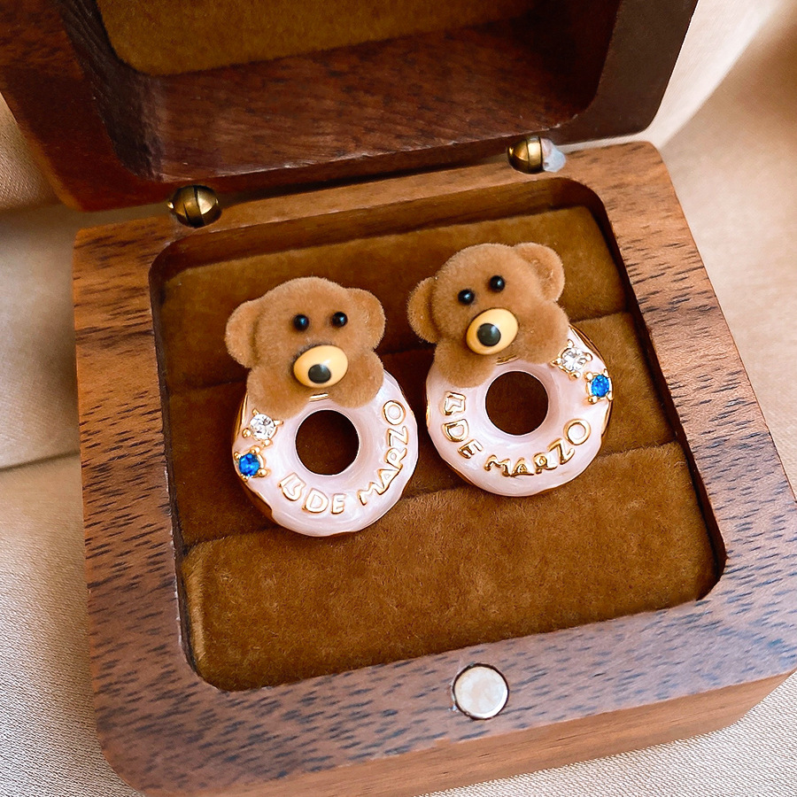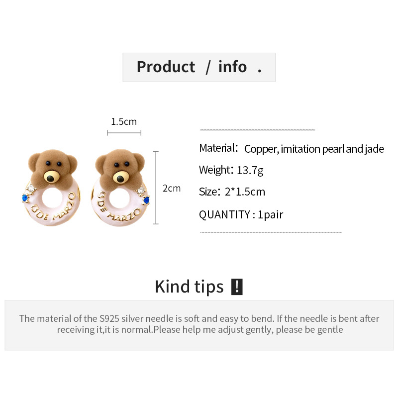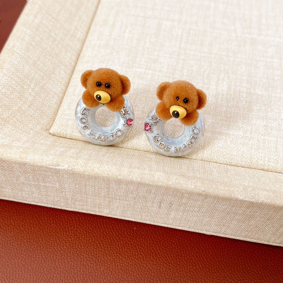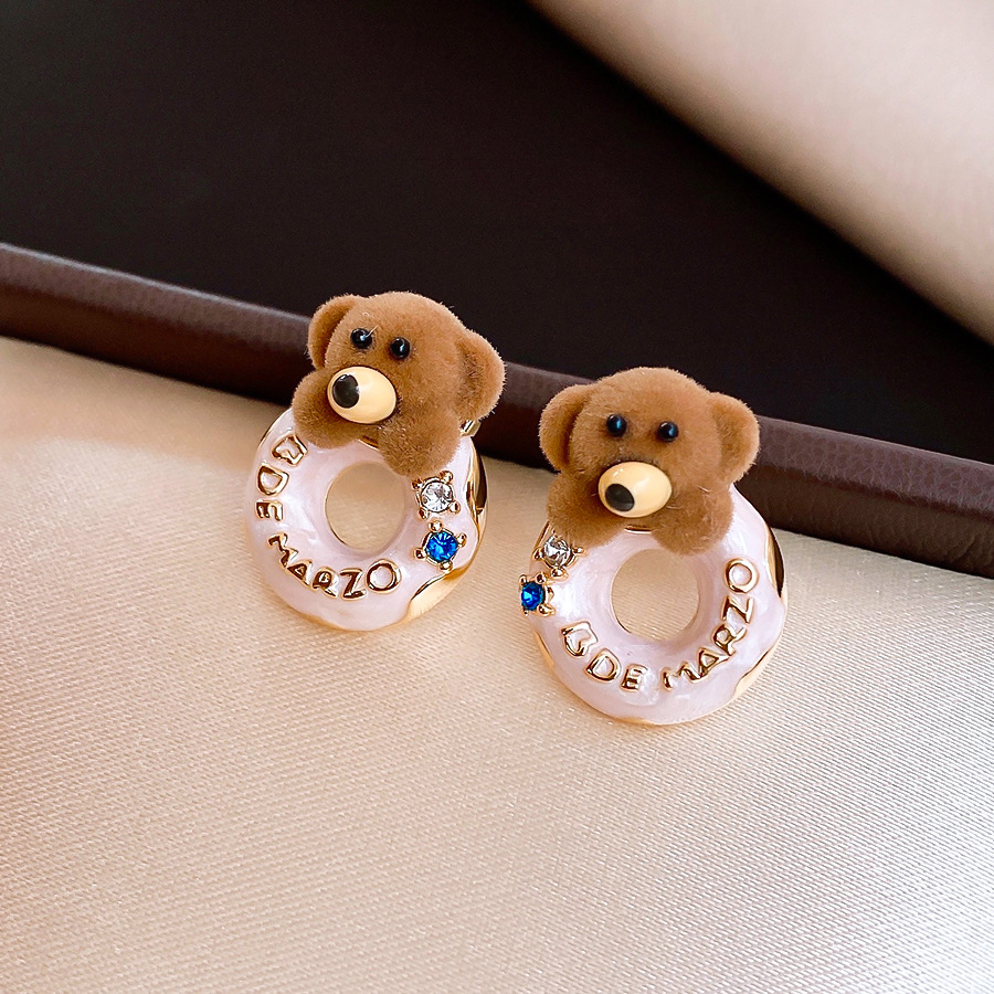 银针可爱甜美植绒小熊滴油圆形耳环轻奢高级感耳钉时尚简约耳饰女 English | 投诉