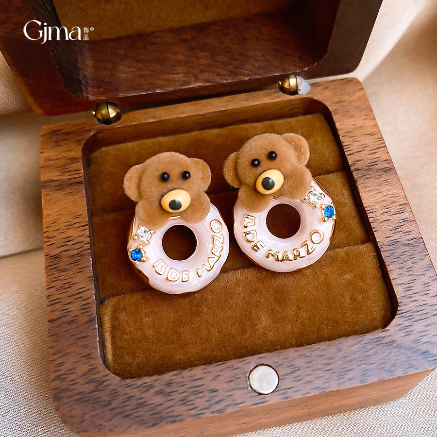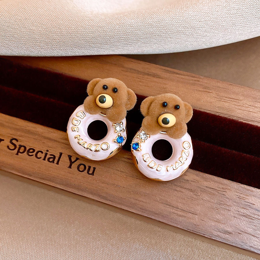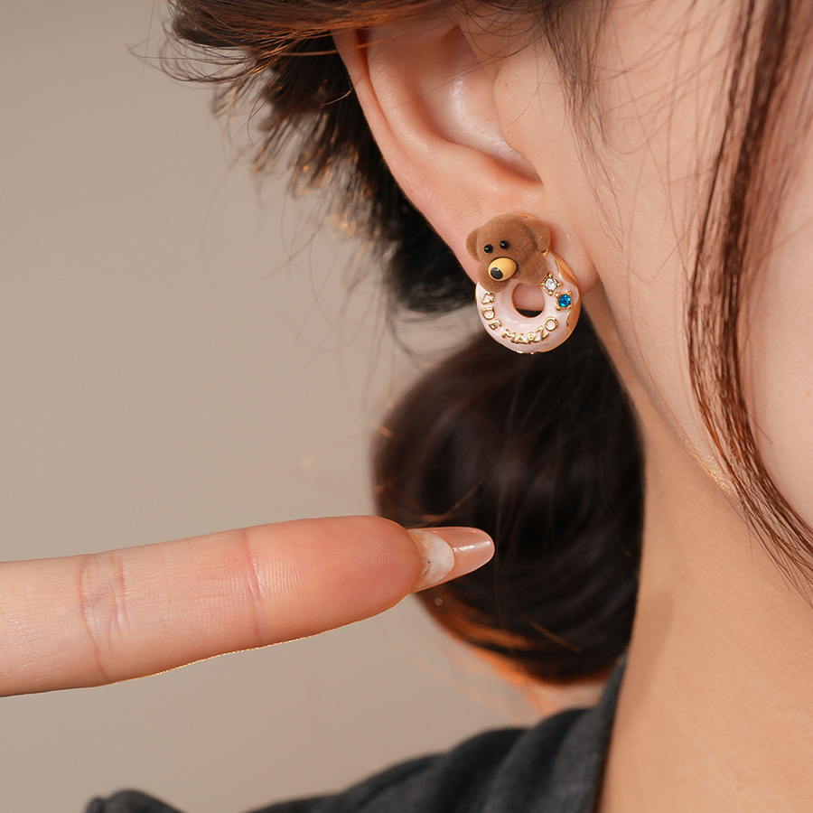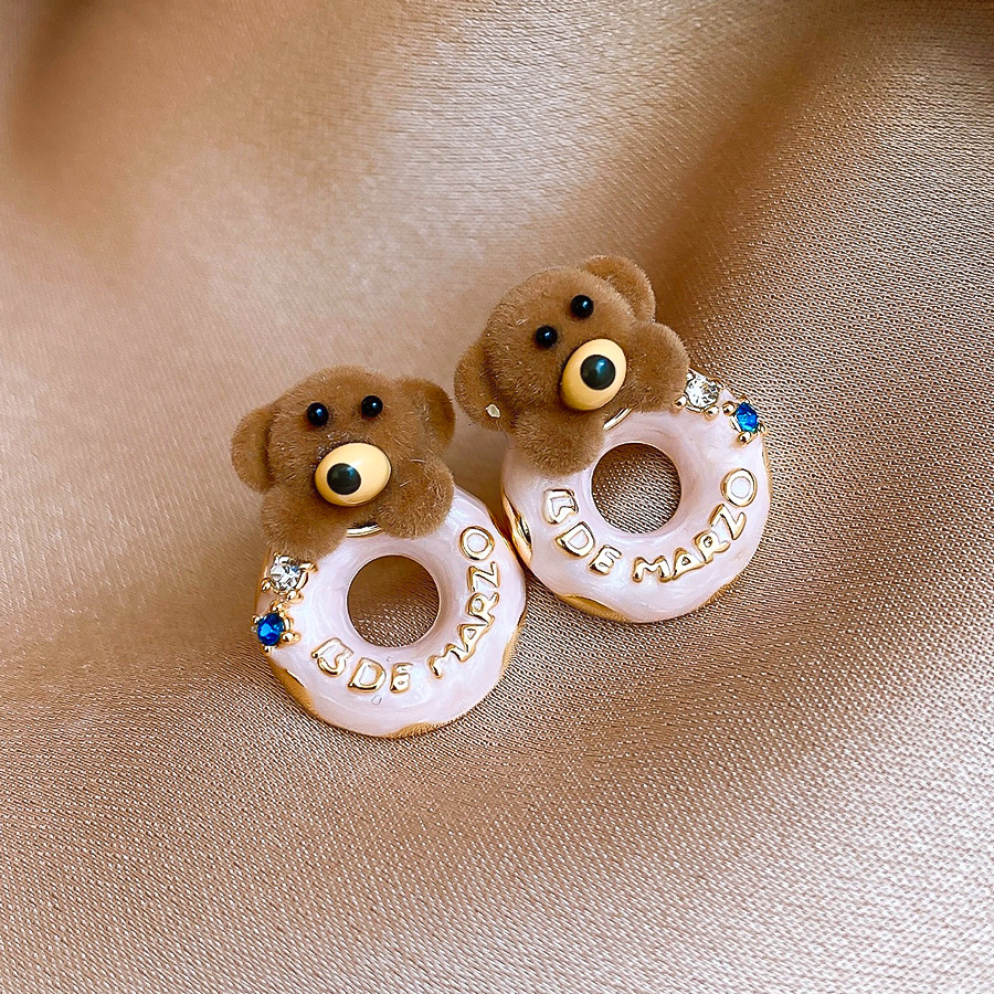 银针可爱甜美植绒小熊滴油圆形耳环轻奢高级感耳钉时尚简约耳饰女 English | 投诉