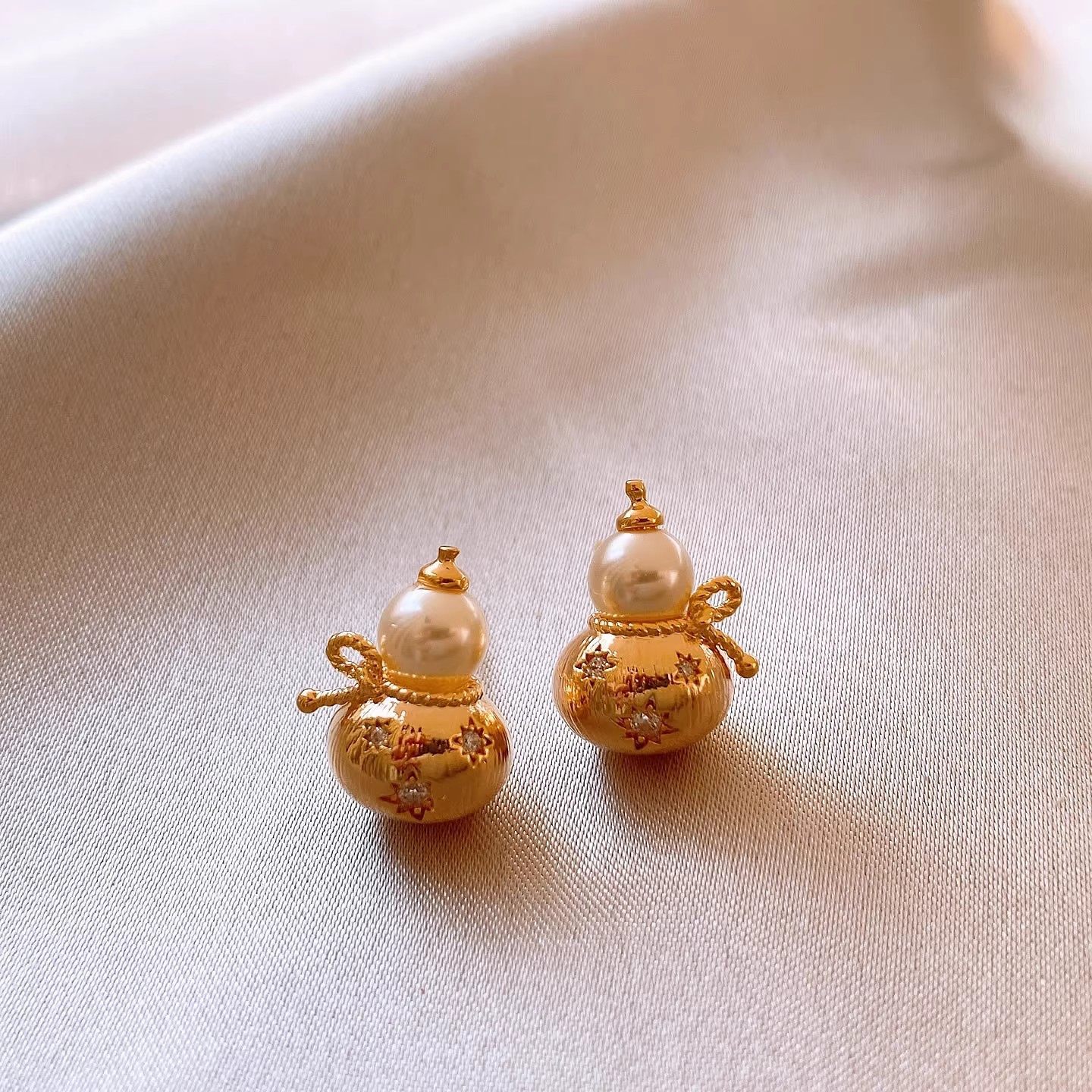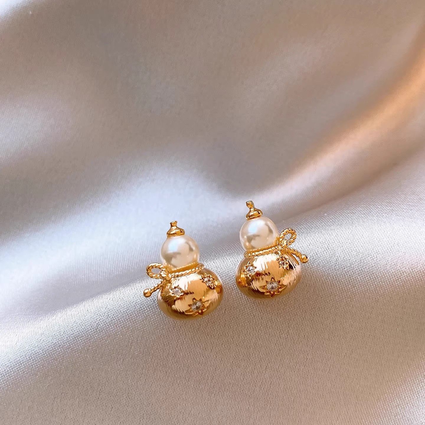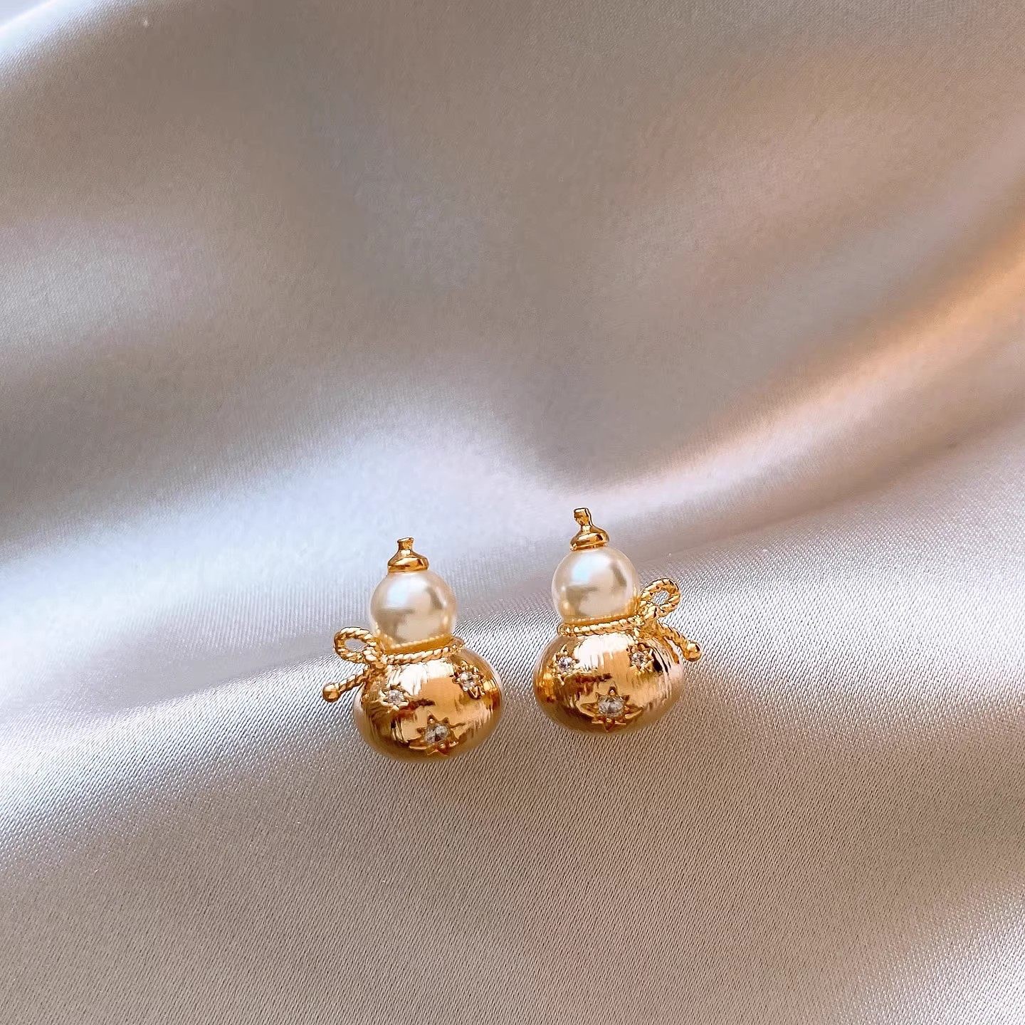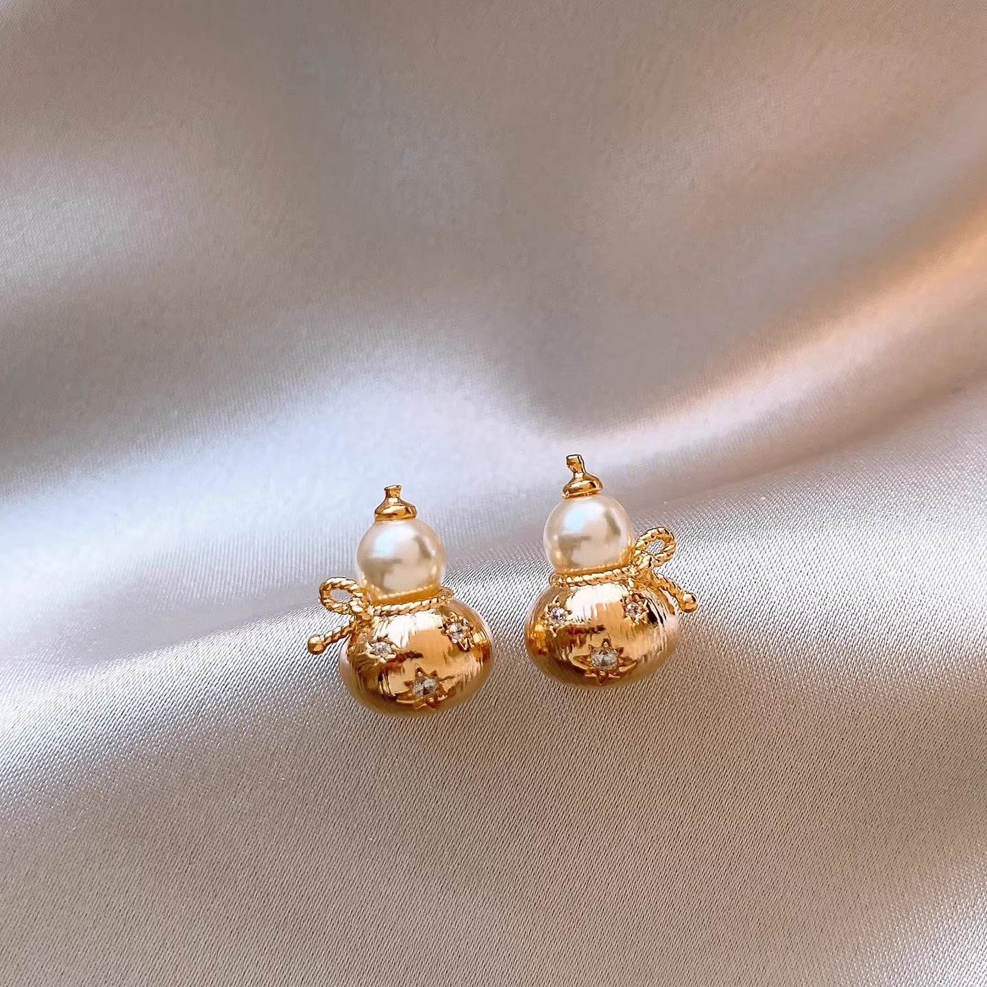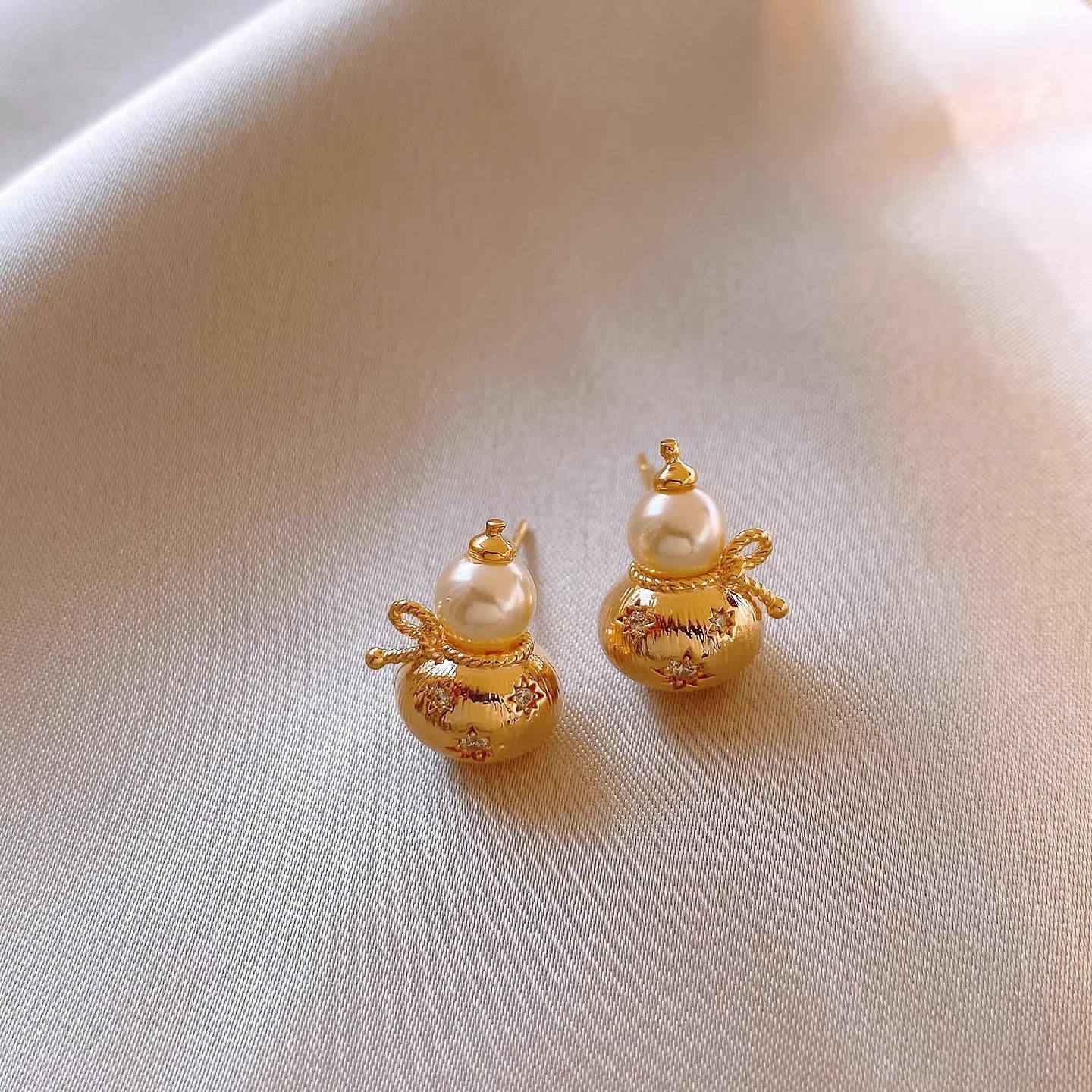 银针新中式复古镶钻葫芦珍珠耳钉小众高级感耳环轻奢高级感耳饰女 English | 投诉