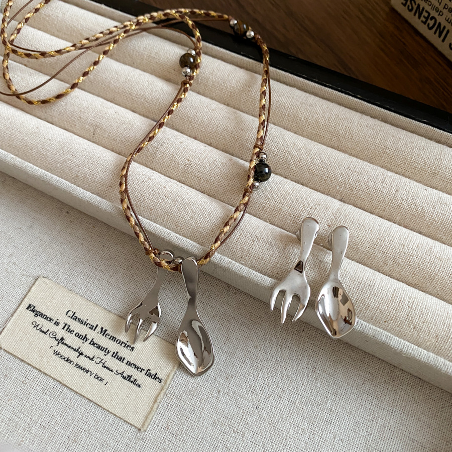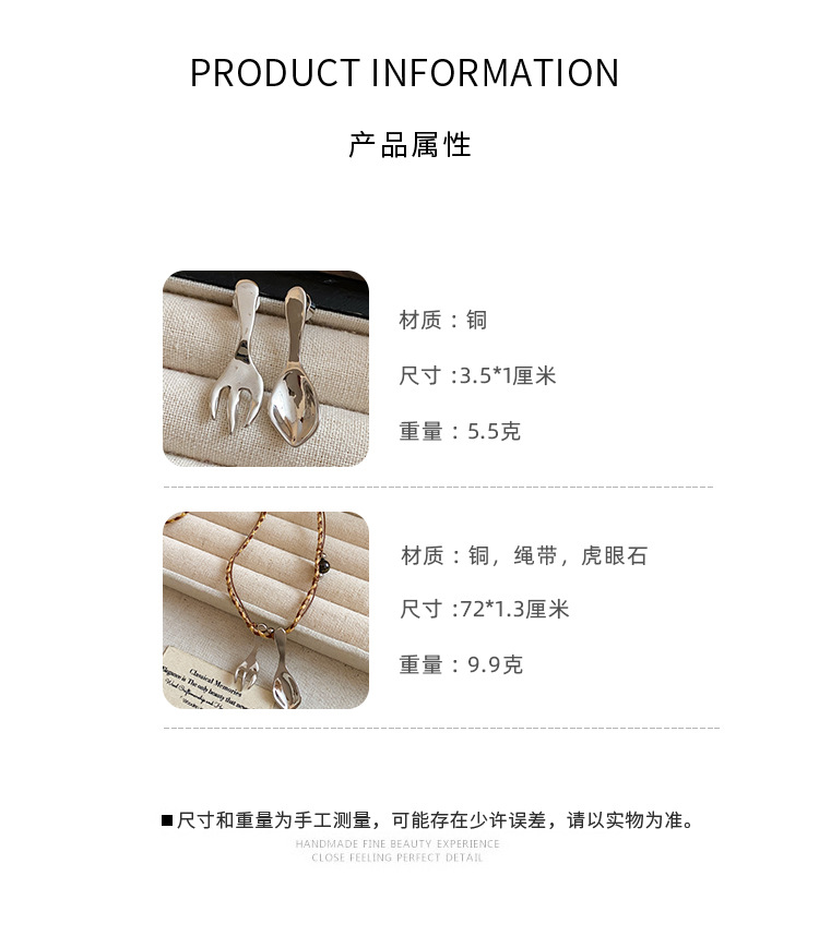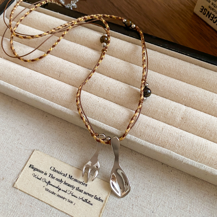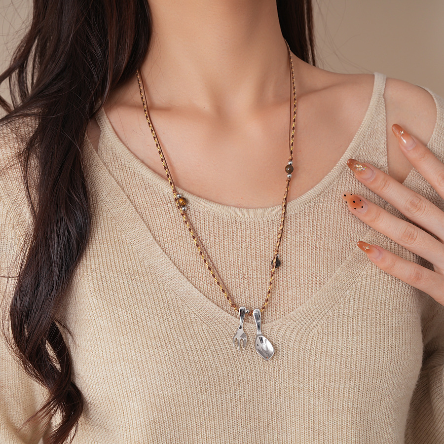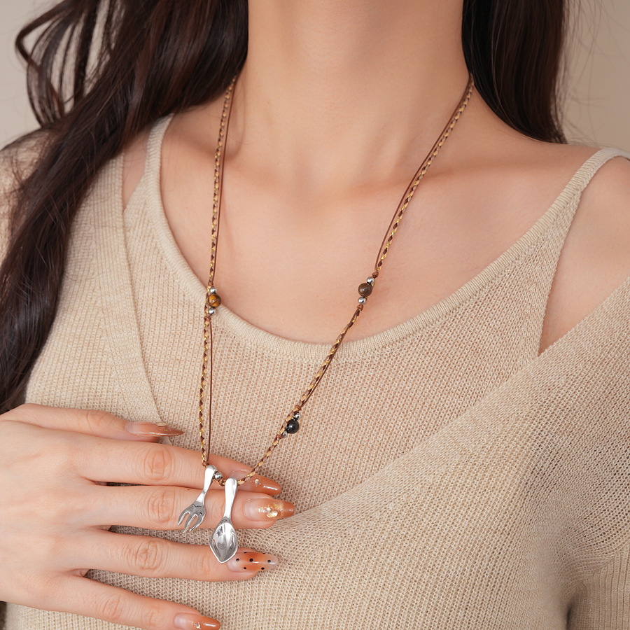 复古简约绳带虎眼石串珠勺子吊坠项链配饰女毛衣链轻奢高级感项饰 English | 投诉