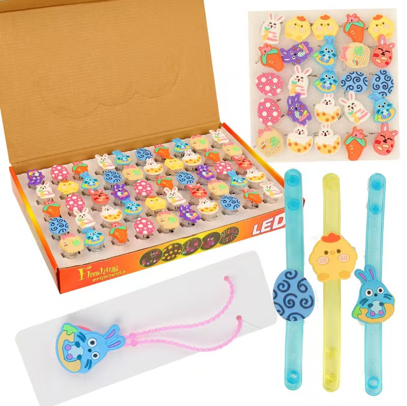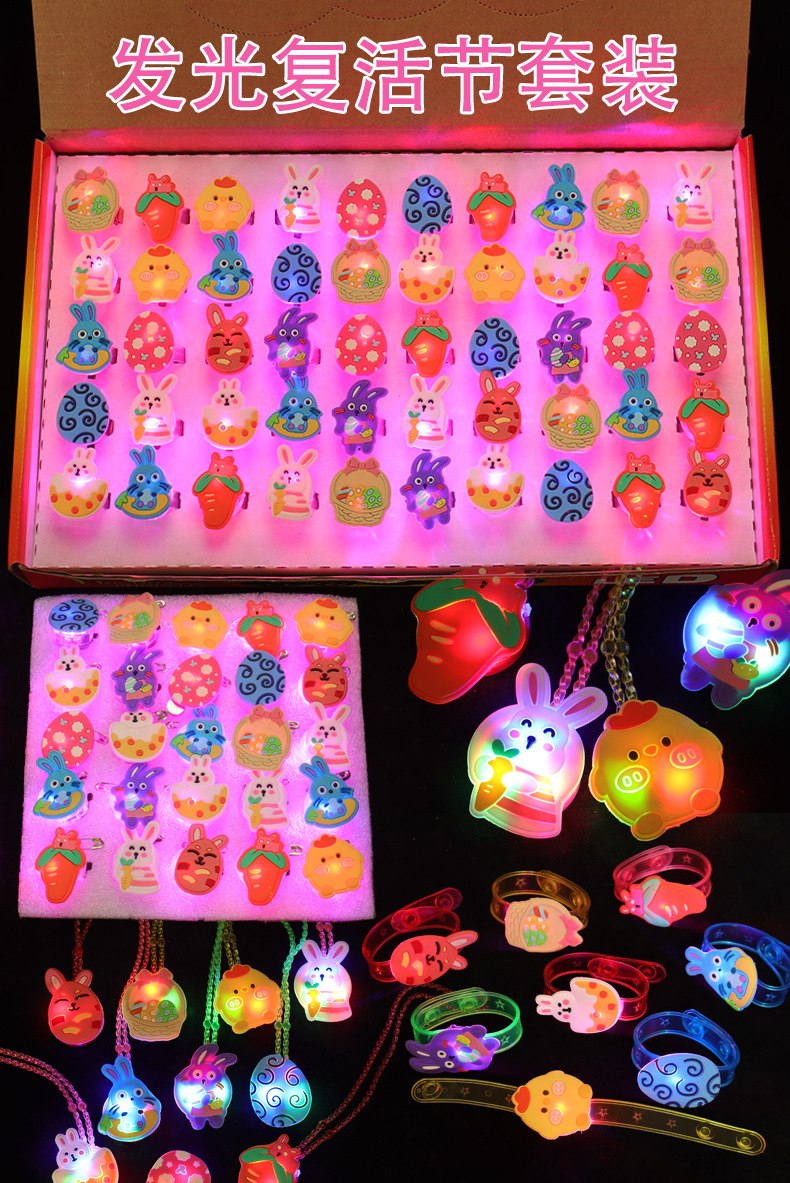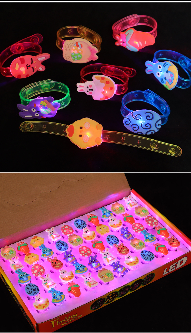 复活节发光戒指闪光兔子夜光彩蛋吊坠钵钵鸡手环跨境玩具厂家直销