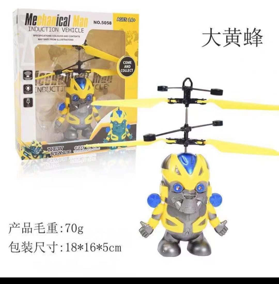 适用年龄: 少年(7-14岁) 包装方式: 开窗彩盒 材质: ABS + 电子元件 产地: 广东汕头 供电方式: 充电 规格: 18*16*5cm 货号: 5058 加工定制: 来图定制 加工方式: 来样加工 控制方式: 手势感应 遥控 是否电动: 是 是否多功能: 是 是否有导购视频: 是 颜色: 大黄蜂感应飞行器 是否跨境出口专供货源: 是 重量: 0.102 kg/盒