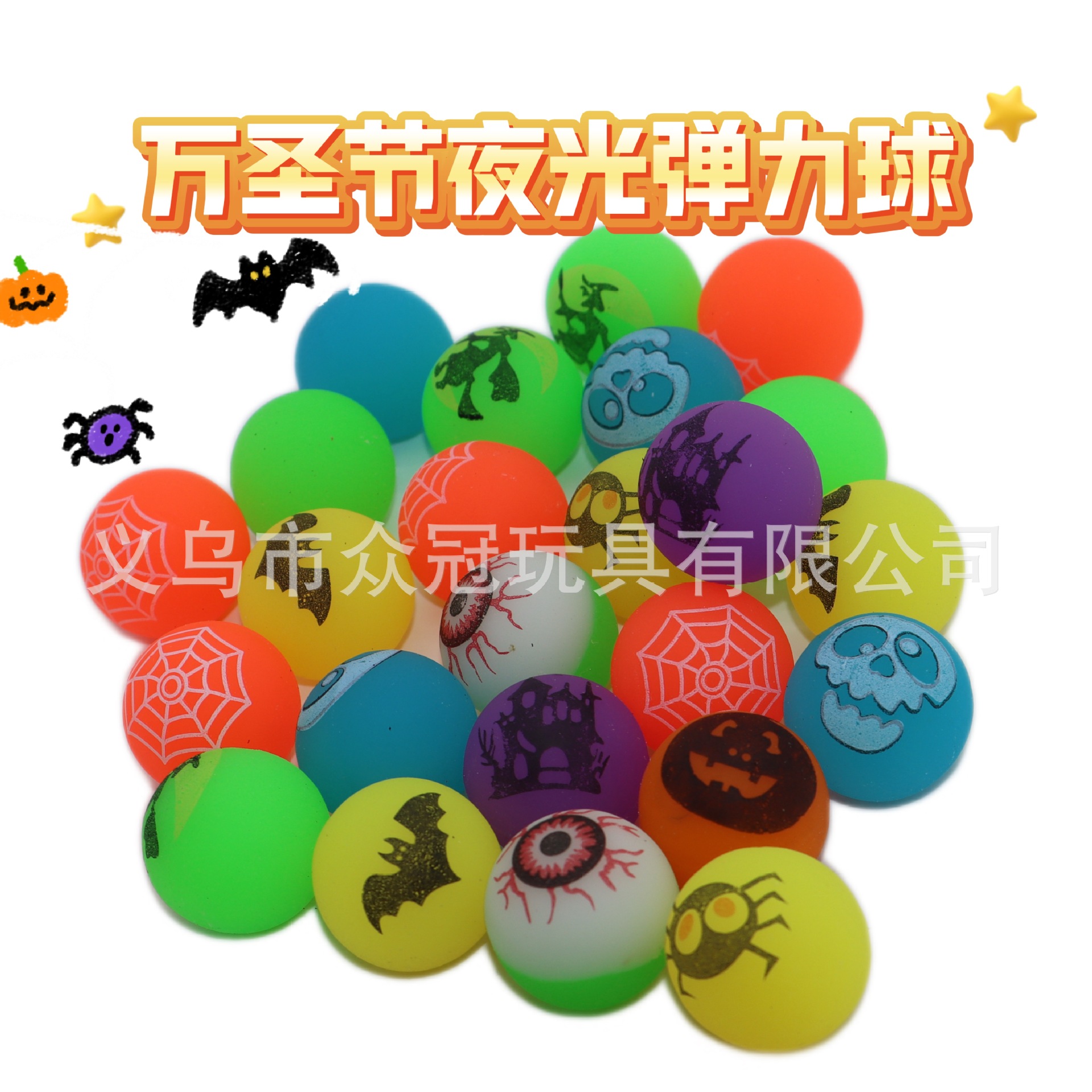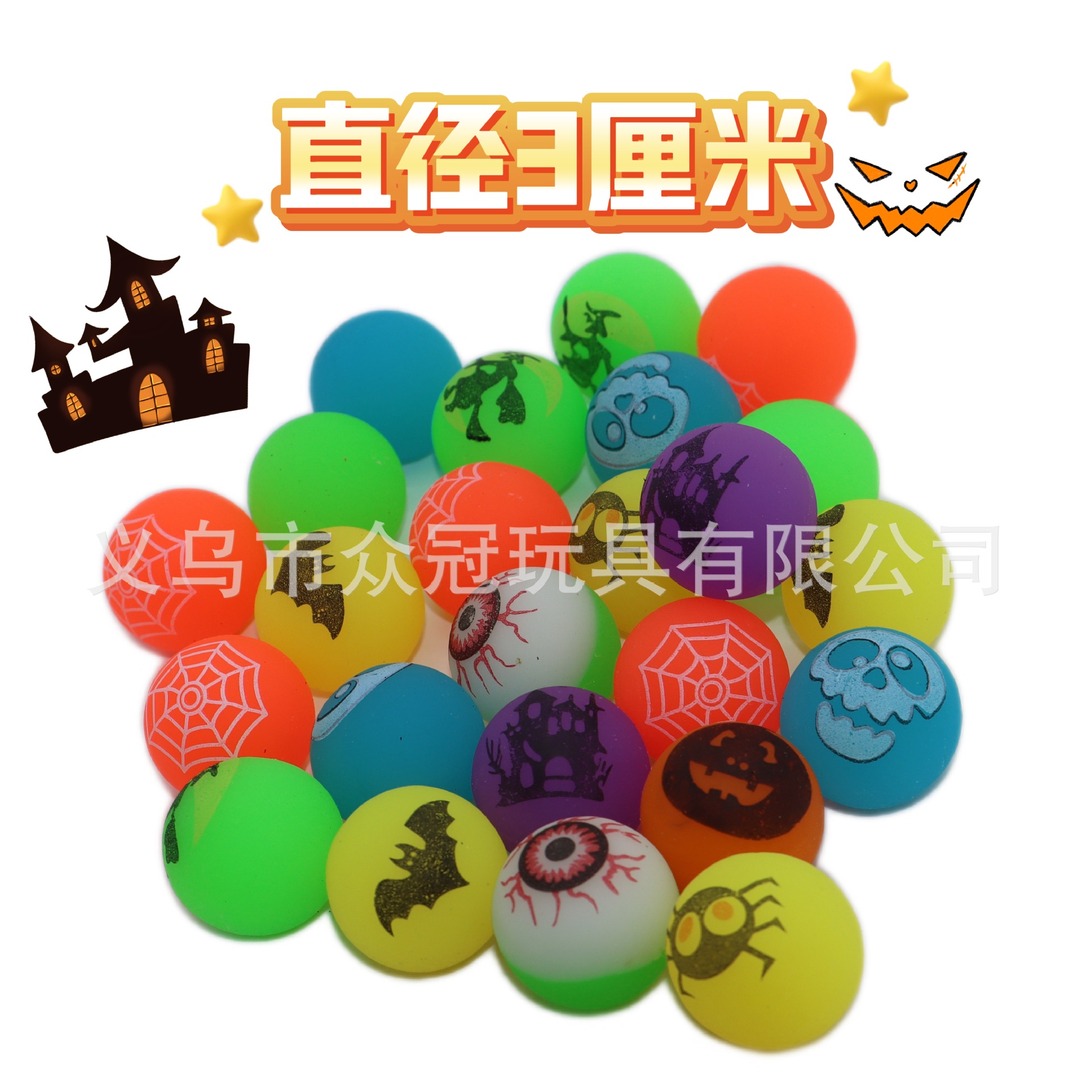 万圣节夜光弹力球3cm夜光弹球小礼品儿童玩具跨境弹跳球 English | 投诉