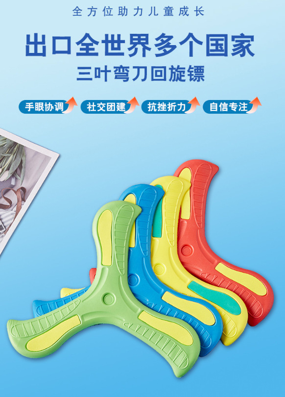 EVA儿童手抛三叶回旋镖玩具户外亲子互动飞去来回力标大飞镖夜光 English | 投诉