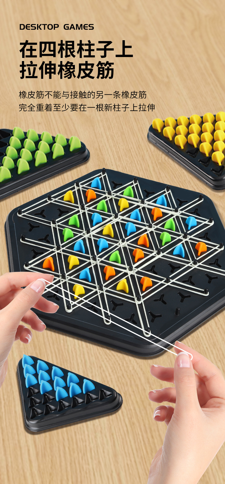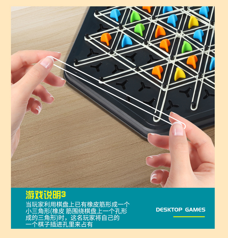 连锁棋智力桌面游戏家庭强互动性益智儿童橡皮筋几何连锁三角棋 English | 投诉