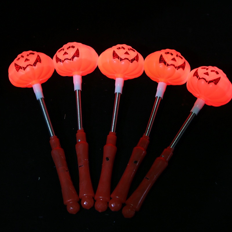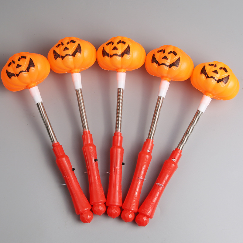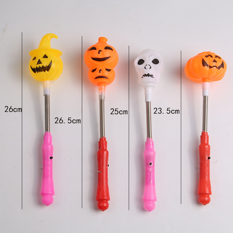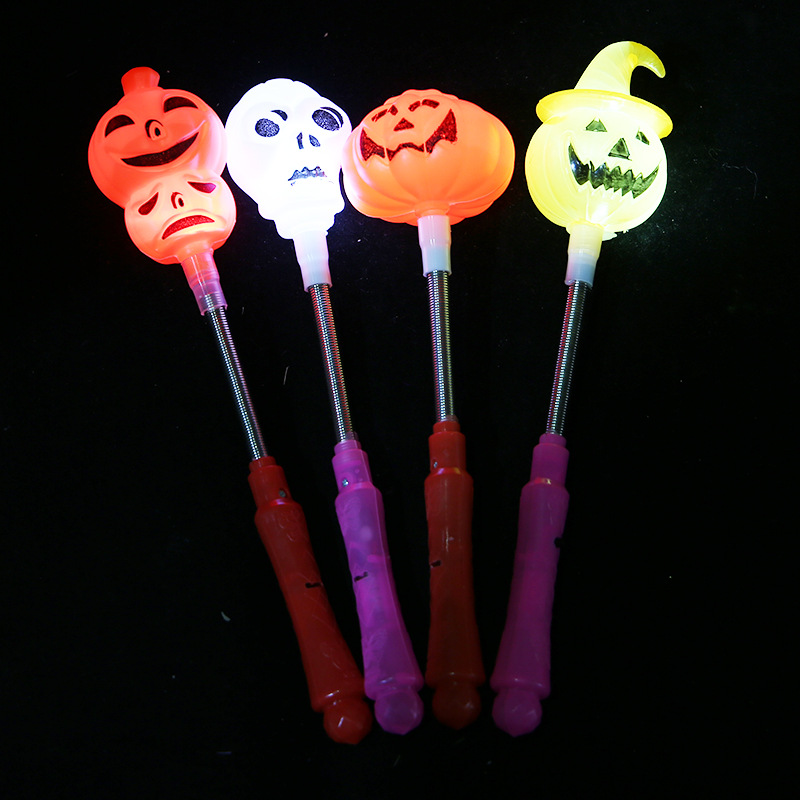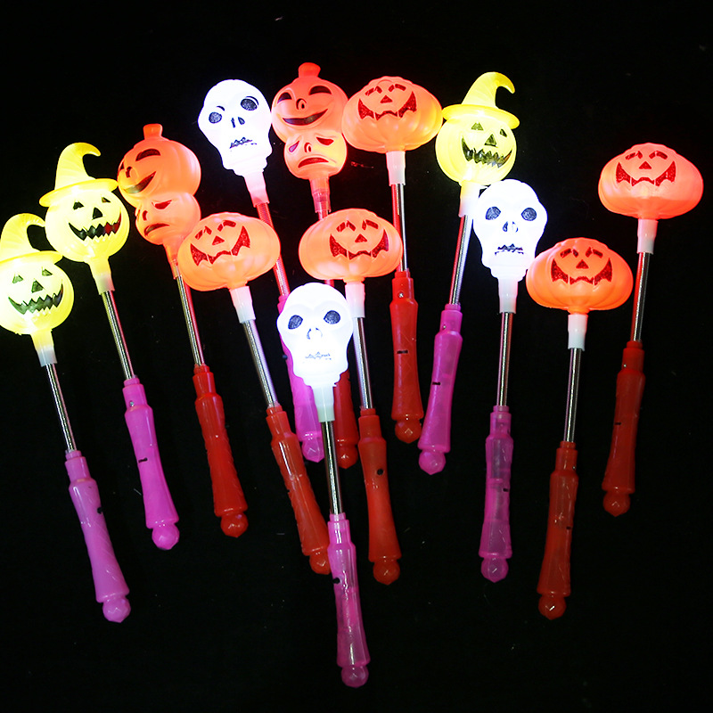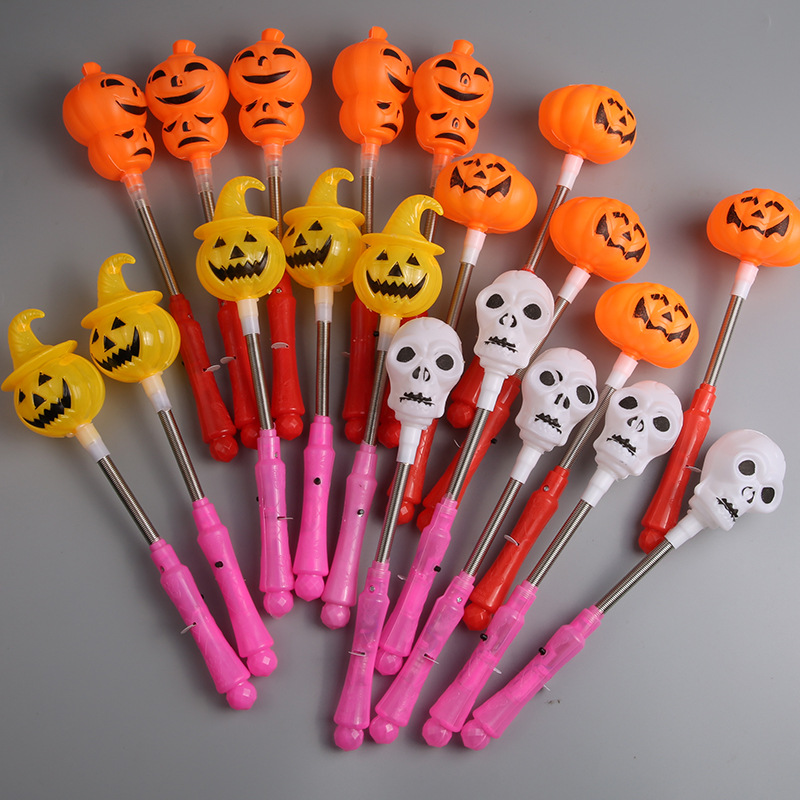 新款万圣节南瓜荧光棒骷髅南瓜灯手摇棒幼儿园礼物儿童玩具闪光棒