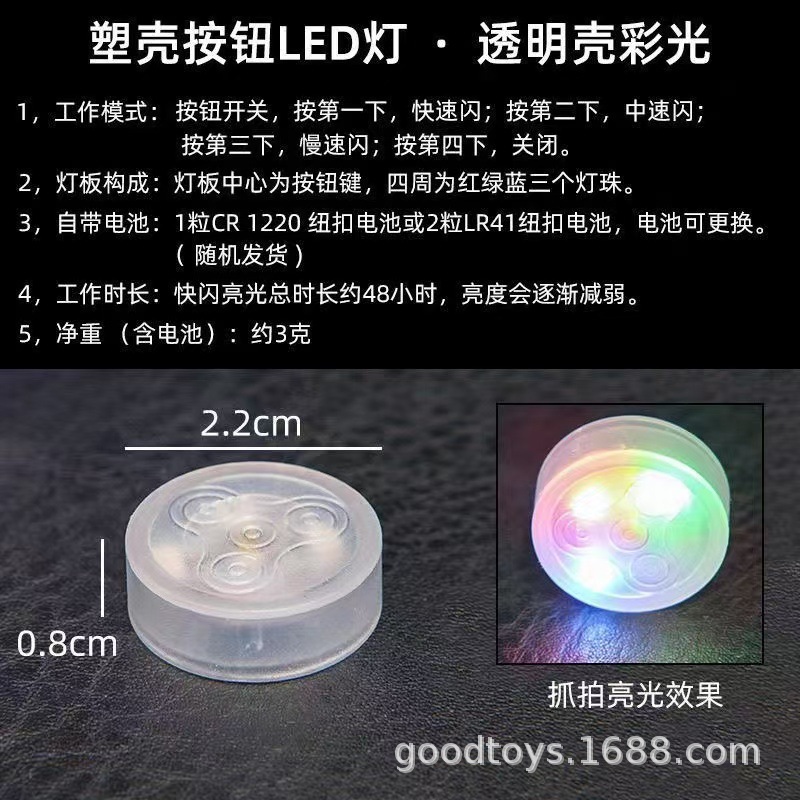按压款陀螺灯LED发光圆盘按压灯圆饼灯配件灯手工DIY发光玩具配件 English | 投诉