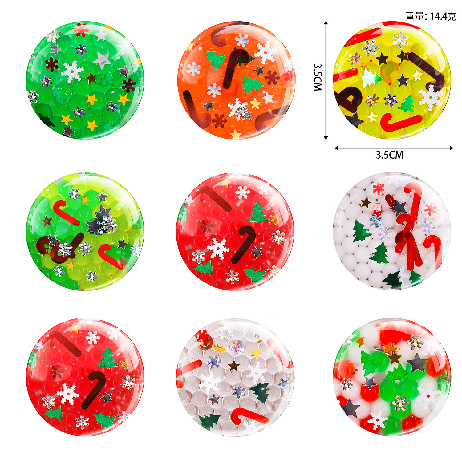 玩具材质: TPR 适用年龄: 青年(15-35岁) 是否有动漫形象: 否 品牌: 无 产地: 浙江省 是否外贸专供: 是 货号: 0 是否进口: 否 原产国/地区: 中国 是否跨境出口专供货源: 是 颜色: 圣诞亮片水珠球3.5cm,14.5g 有可授权的自有品牌: 否 加工方式: 来图定制 加工定制: 是 重量: 0.287 kg/个