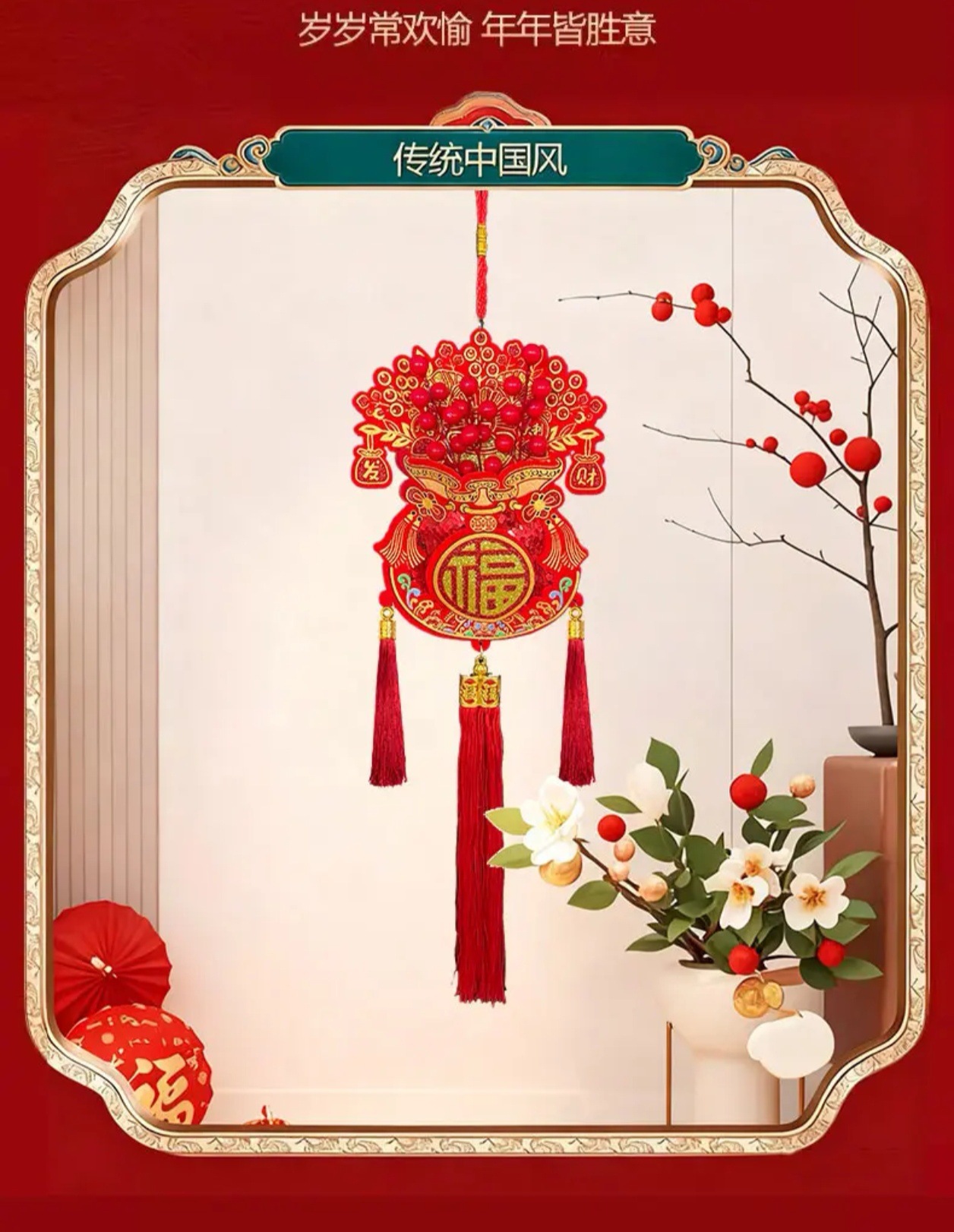 年货新年装饰礼品红果福袋春节中国对联乔迁挂饰圣诞树挂件批发 English | 投诉