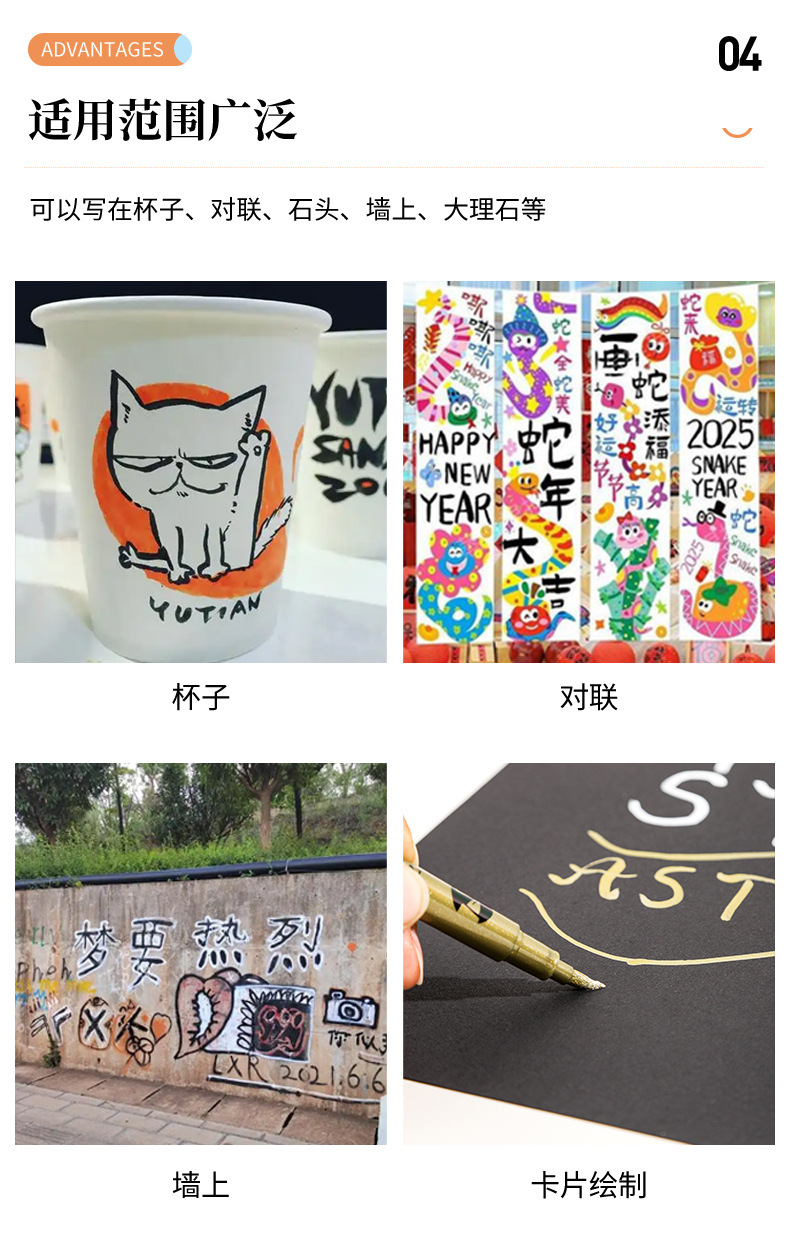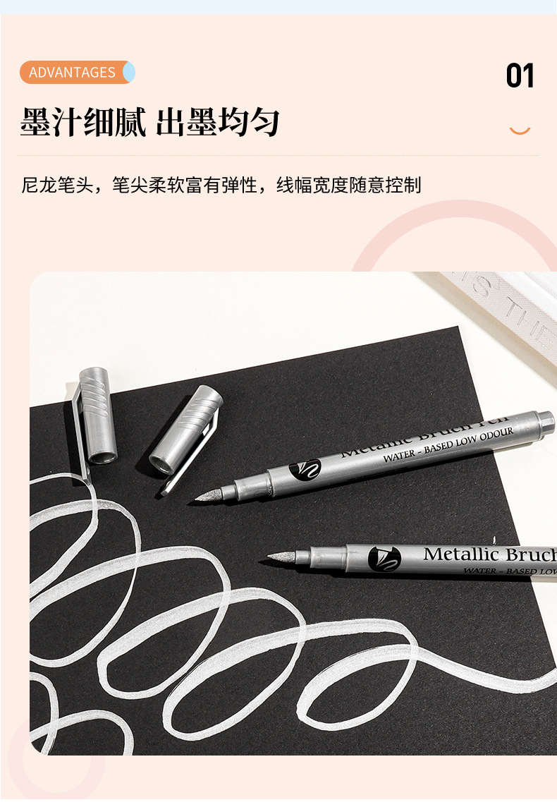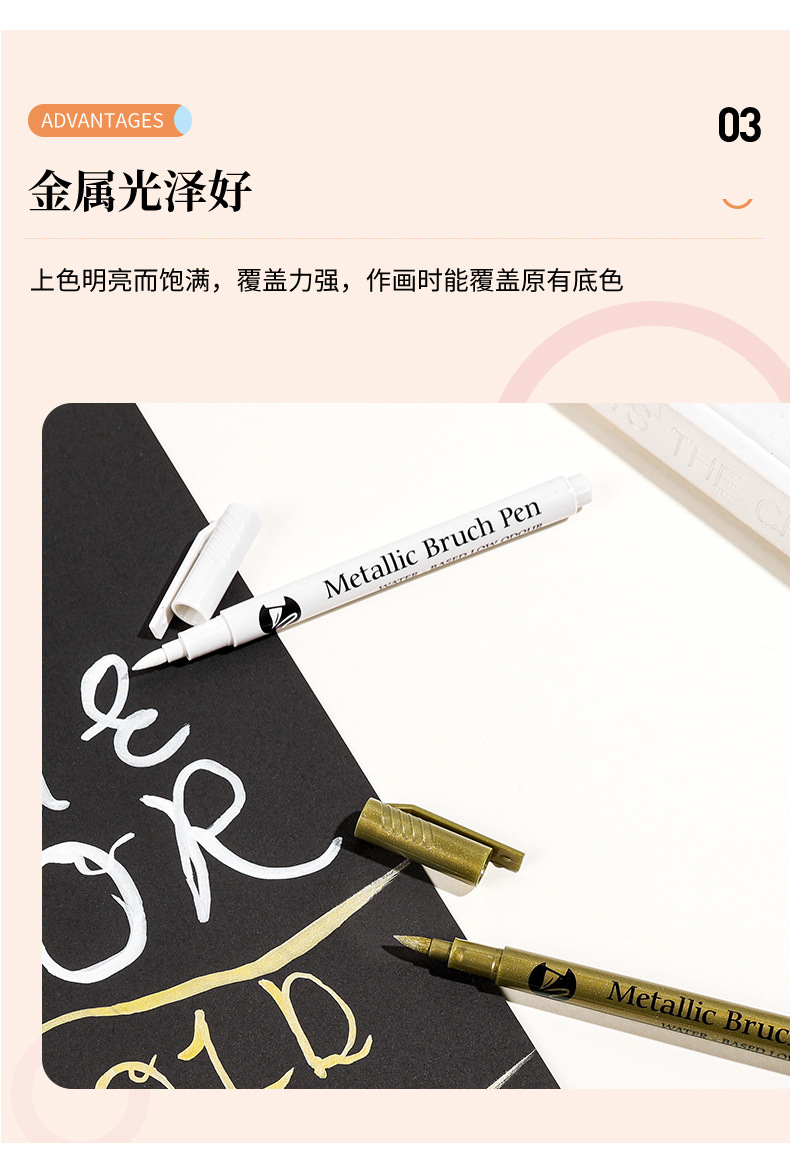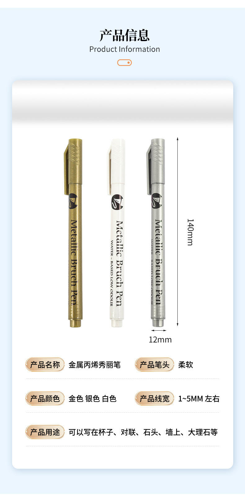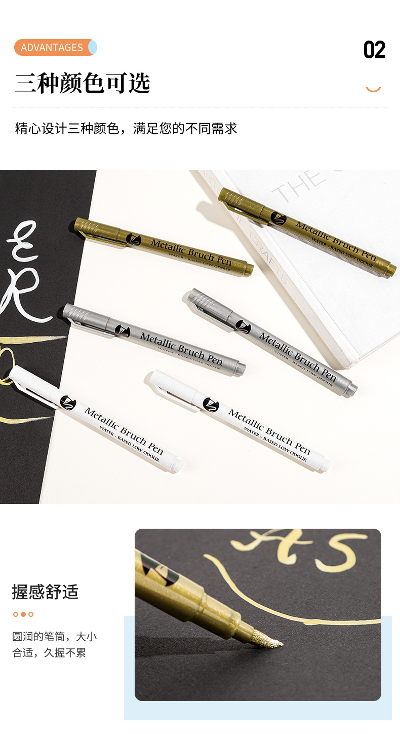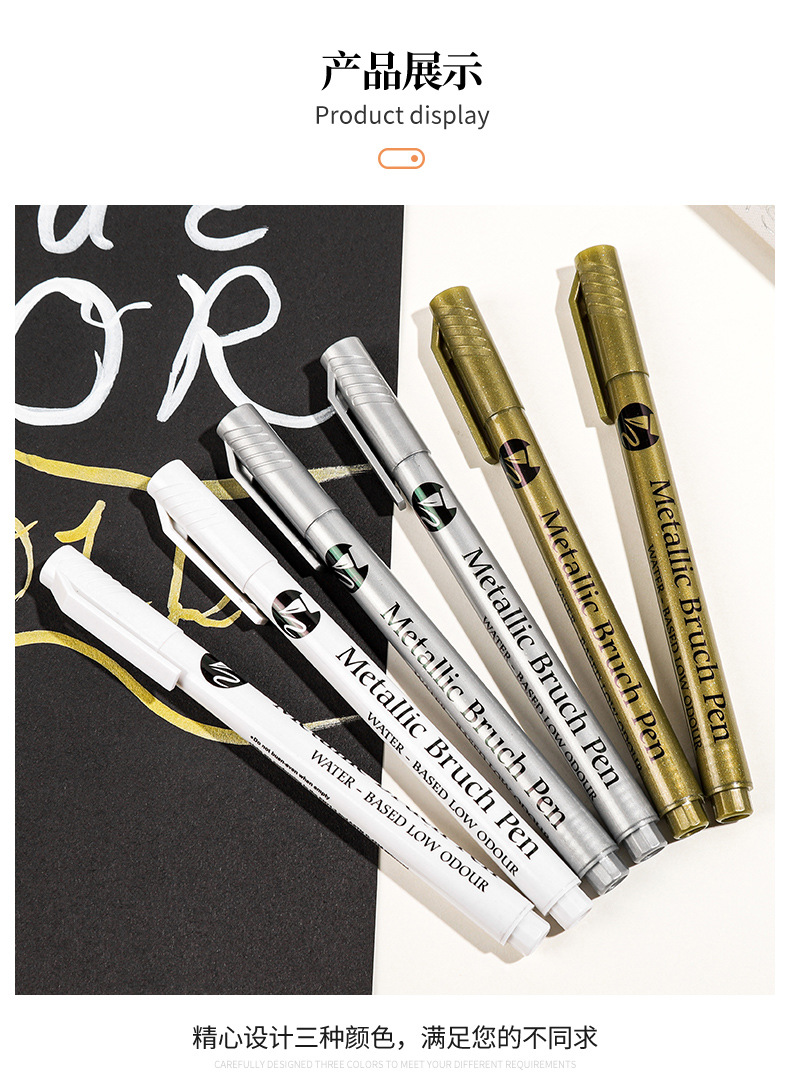 品牌: 金属丙烯秀丽笔 产品特点: 单头 笔类型: 油性笔 货号: 金属丙烯秀丽笔 笔芯颜色: 金色,银色,白色 是否跨境出口专供货源: 是 重量: 0.402 kg/支