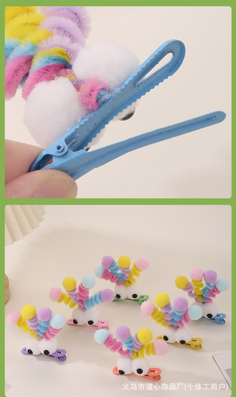多巴胺弹簧毛绒发夹趣味搞怪大眼仔彩色扭扭棒发卡少女鸭嘴夹批发 English | 投诉