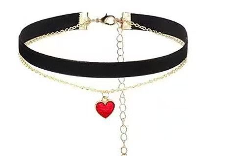 圣诞新年红吊坠少女复古丝绒choker颈链个性甜美爱心锁骨链项链 投诉