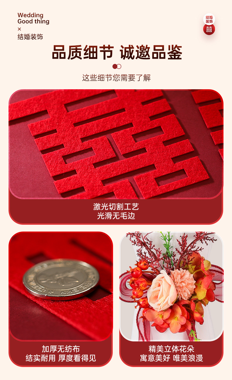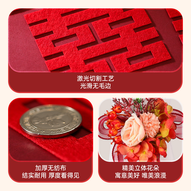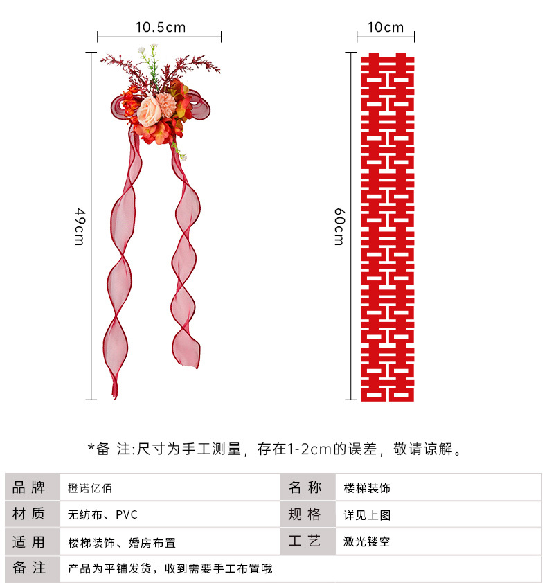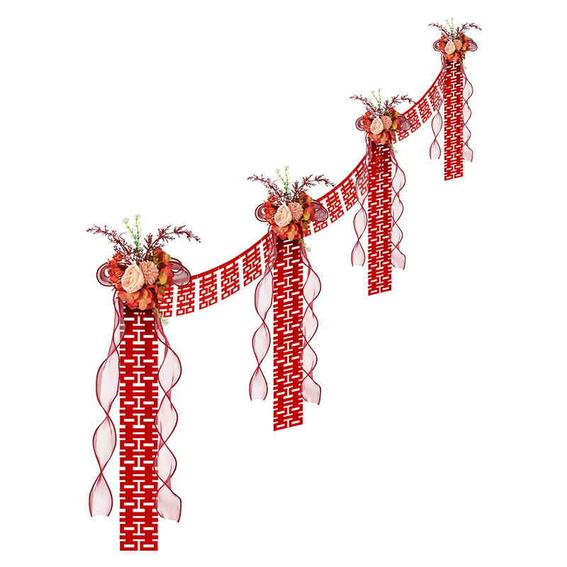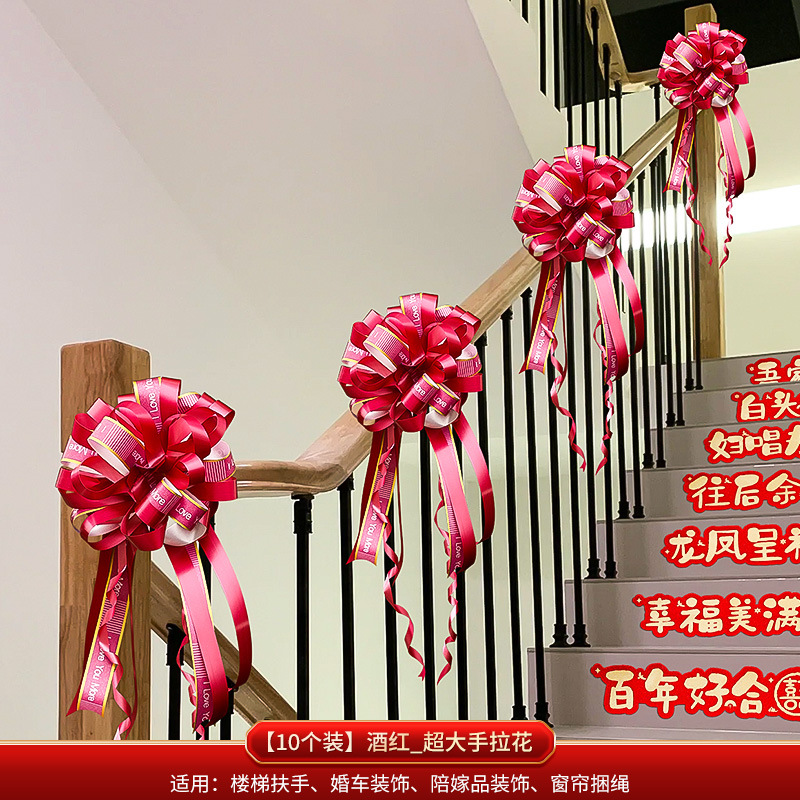 婚房楼梯布置 男方拉花波浪旗楼梯布置 结婚订婚婚礼楼梯扶手彩条结婚楼梯扶手装饰婚房布置套装男方新房婚礼喜字拉花婚庆用品大全