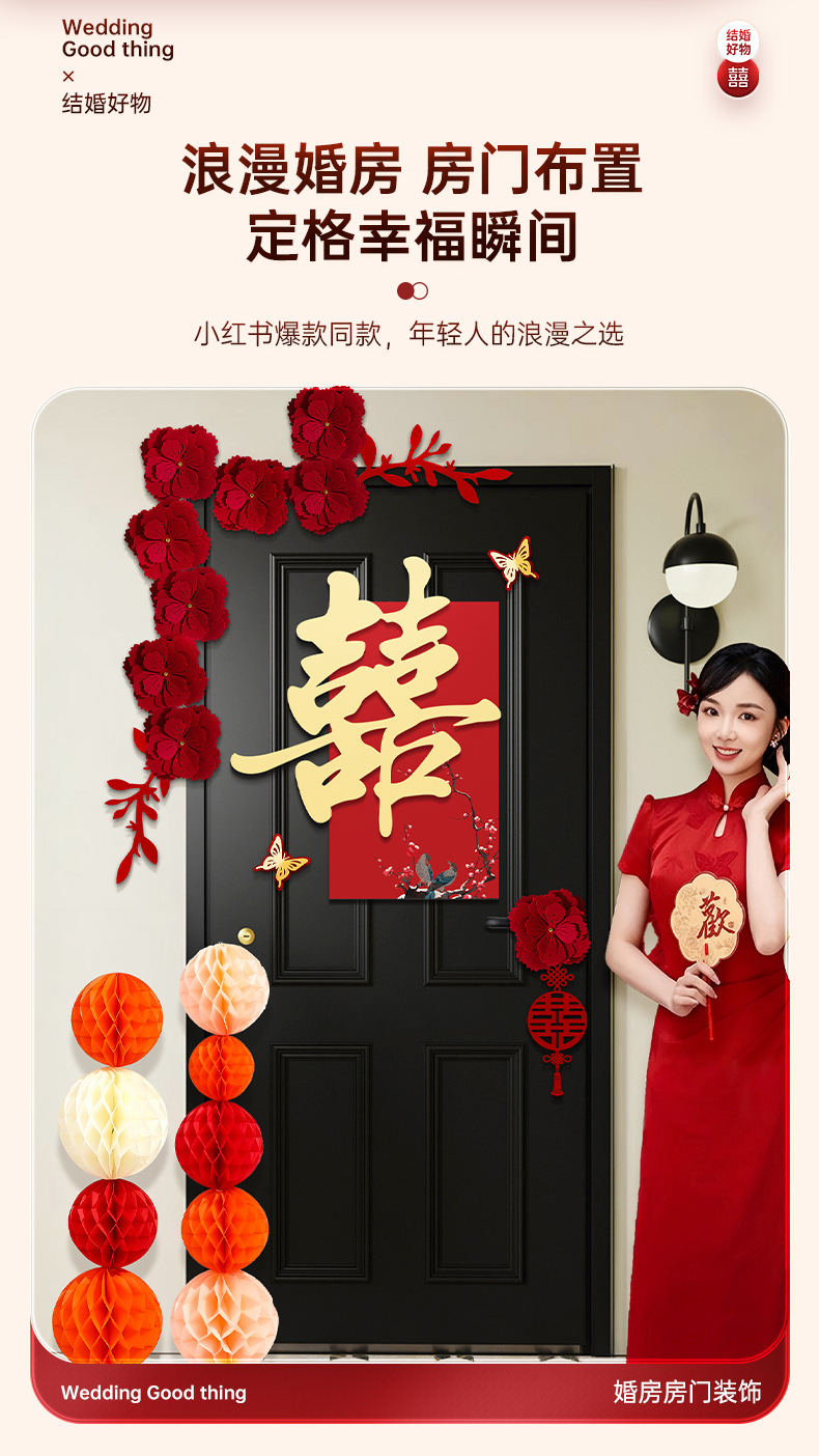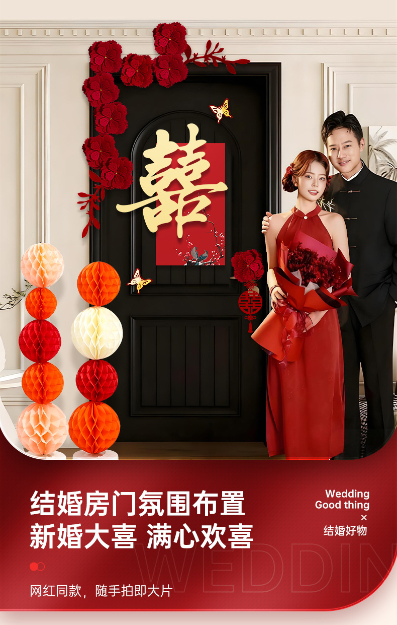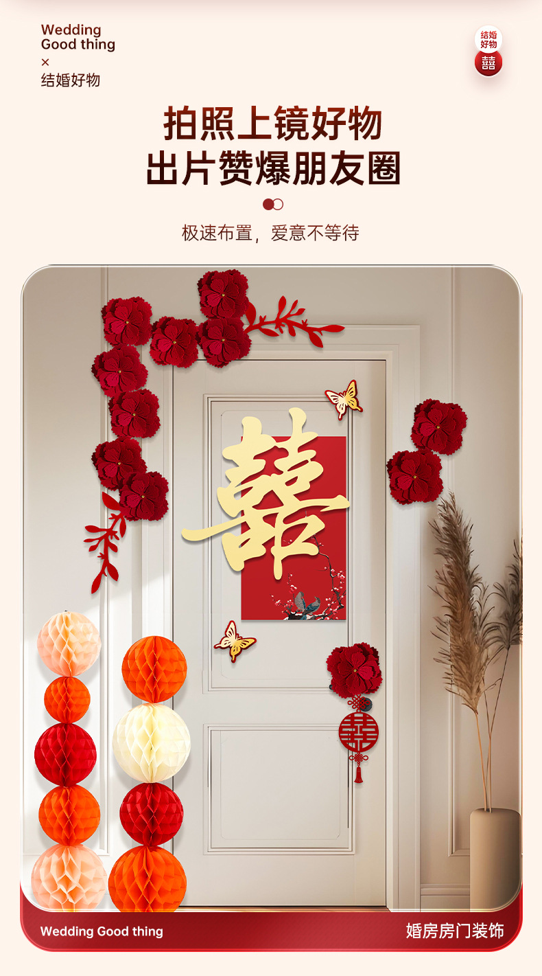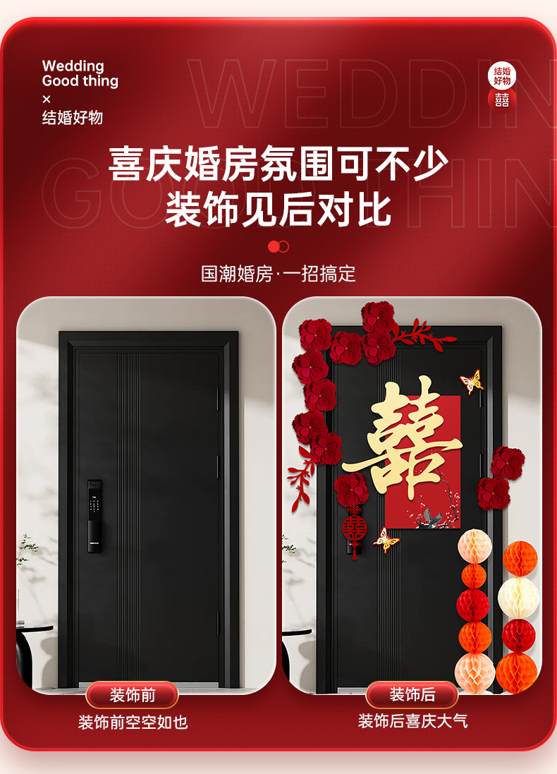 婚房布置套装喜字门贴结婚用品大全婚礼装饰女方男方卧室专用喜字结婚装饰高档酒红喜字门贴房门喜字贴女方卧室男方婚房布置喜字贴