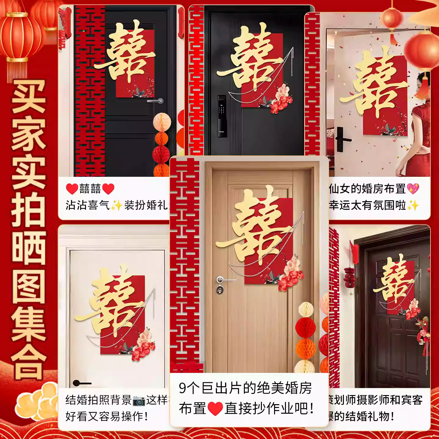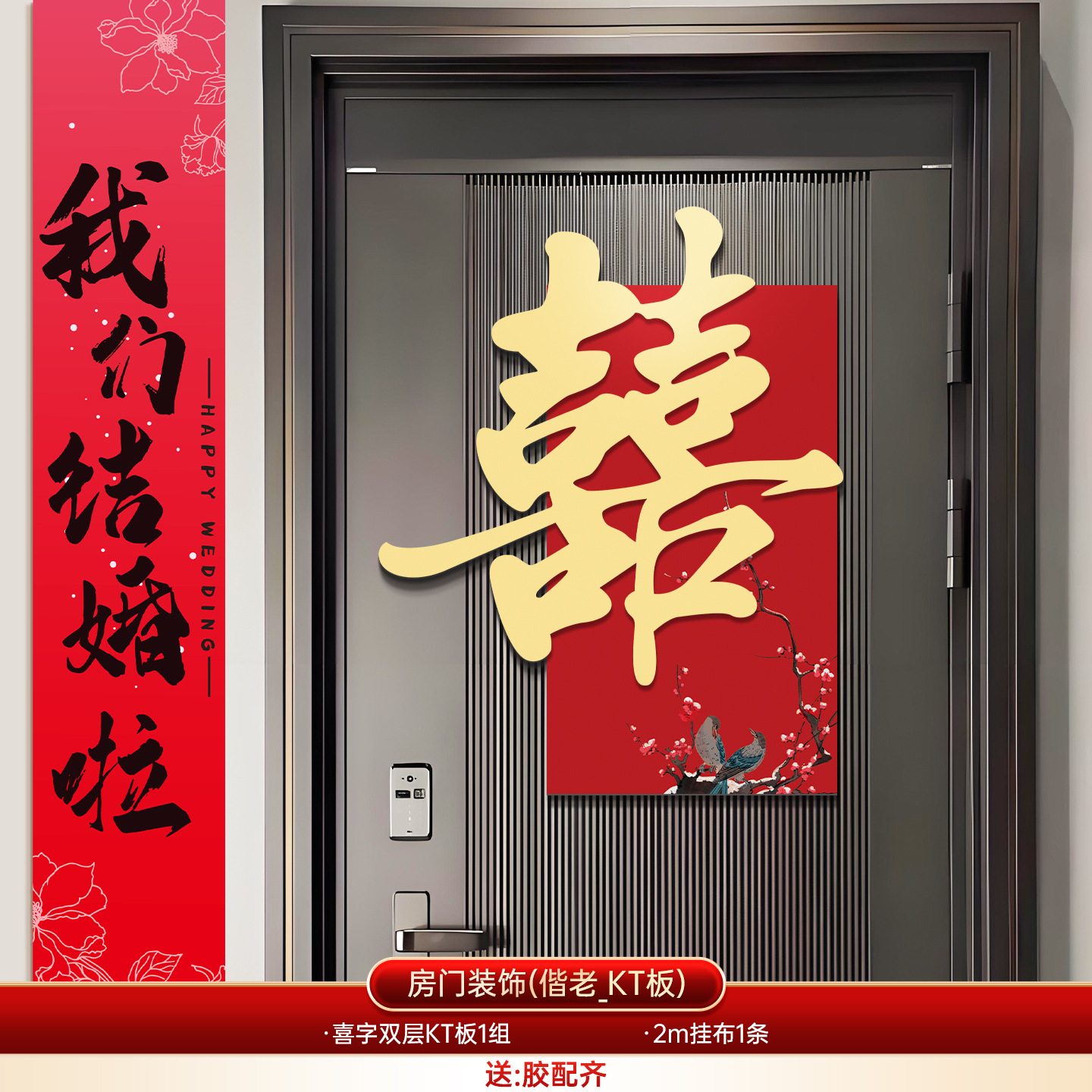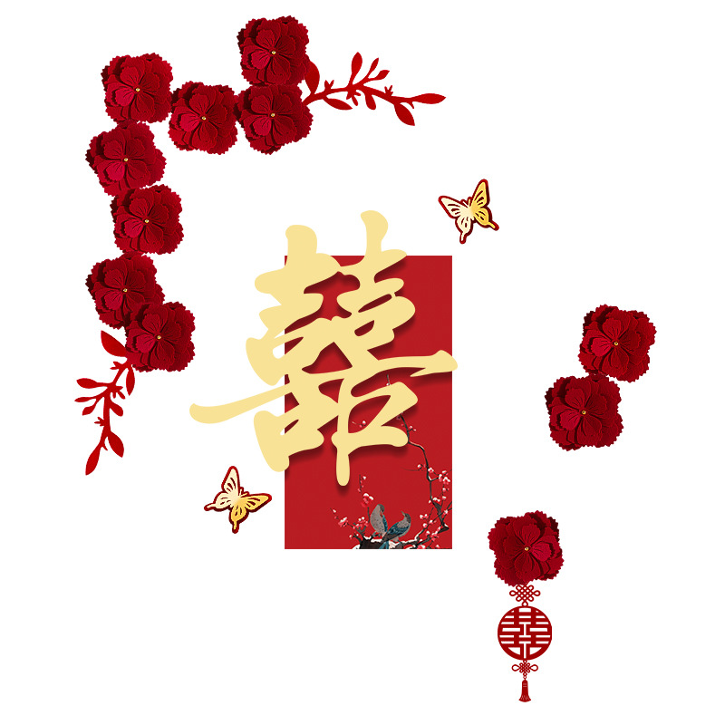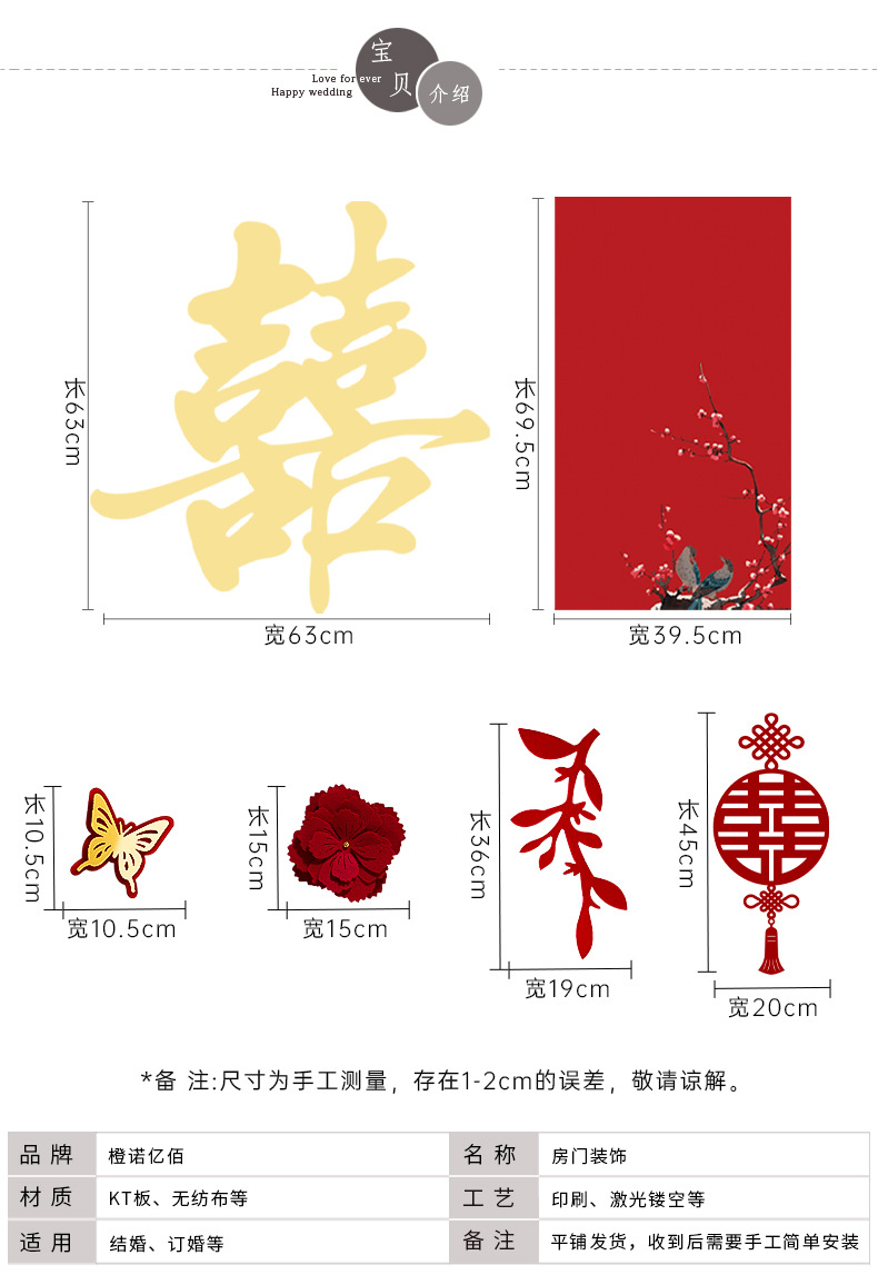 婚房布置套装喜字门贴结婚用品大全婚礼装饰女方男方卧室专用喜字结婚装饰高档酒红喜字门贴房门喜字贴女方卧室男方婚房布置喜字贴